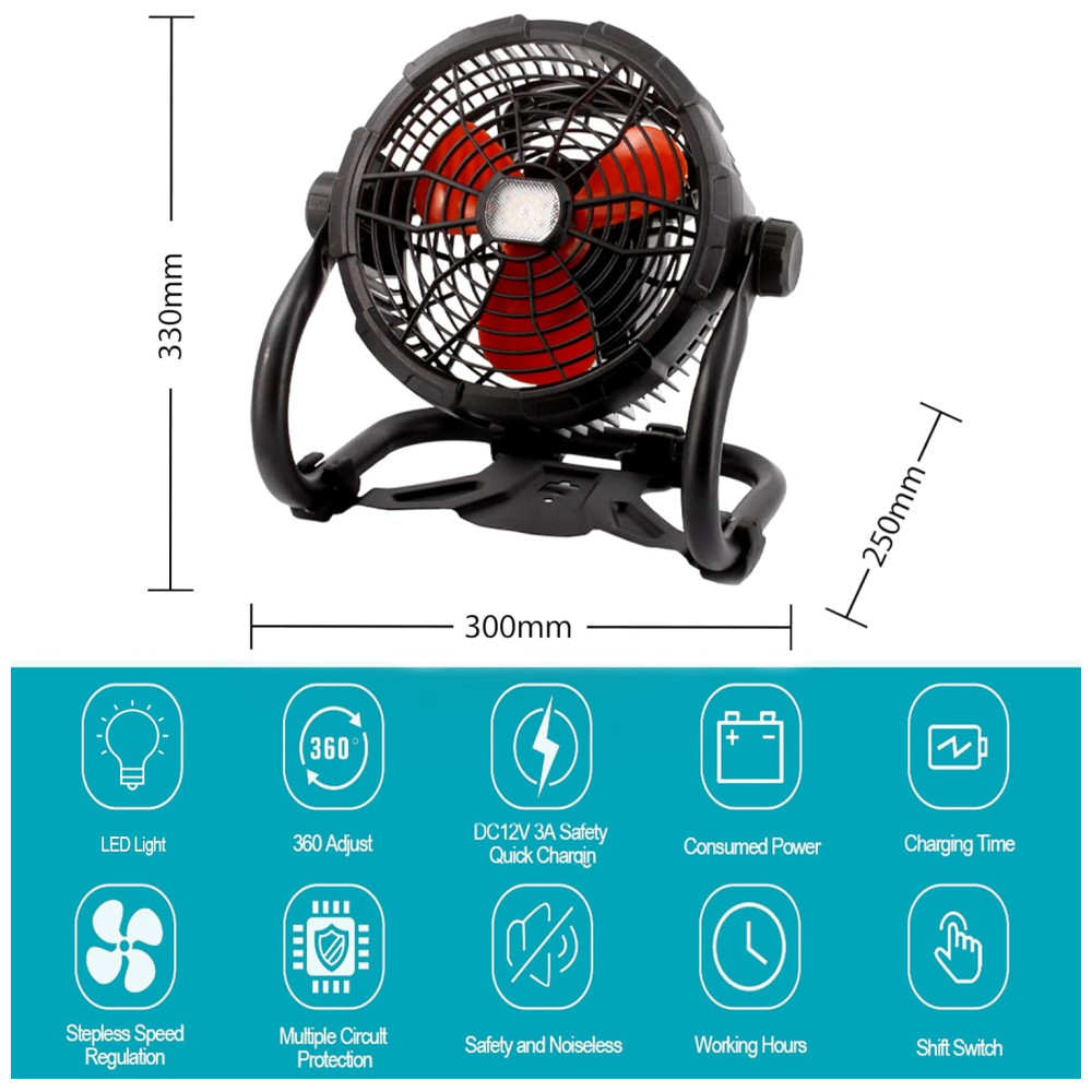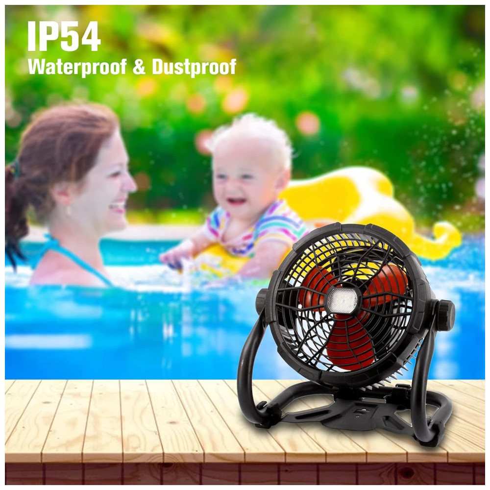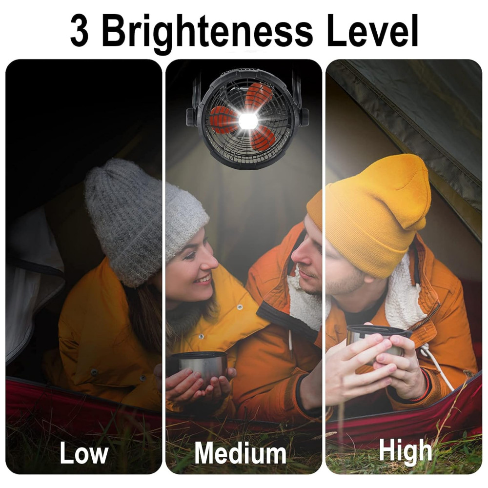 Ideal para uso externo Nossos ventiladores externos para pátios são exclusivamente montados com uma luz LED de 1000lumen, que oferece 3 níveis de brilho para escolher, pode garantir que ele funcione durante a iluminação à noite ou em um ambiente escuro. Este ventilador tem uma cabeça de inclinação de 360 ajustável e a capacidade de suportar o impacto de uma queda, não enferruja facilmente e pode operar normalmente em vários ambientes, fornecendo a você uma solução de refrigeração externa conveniente e confiável.