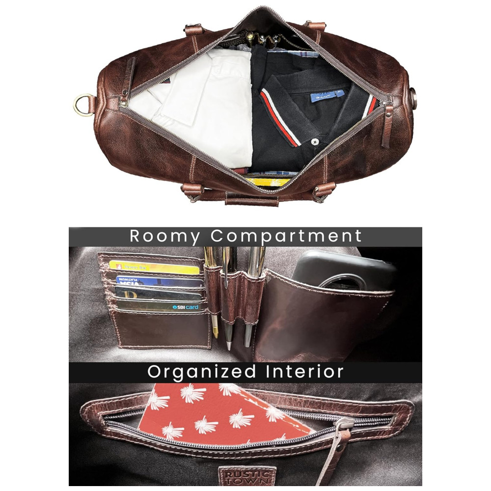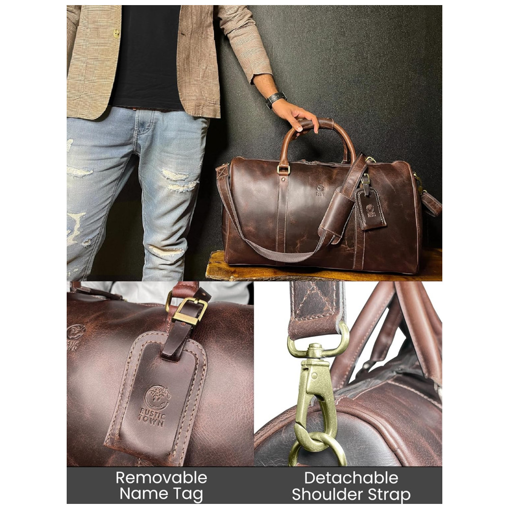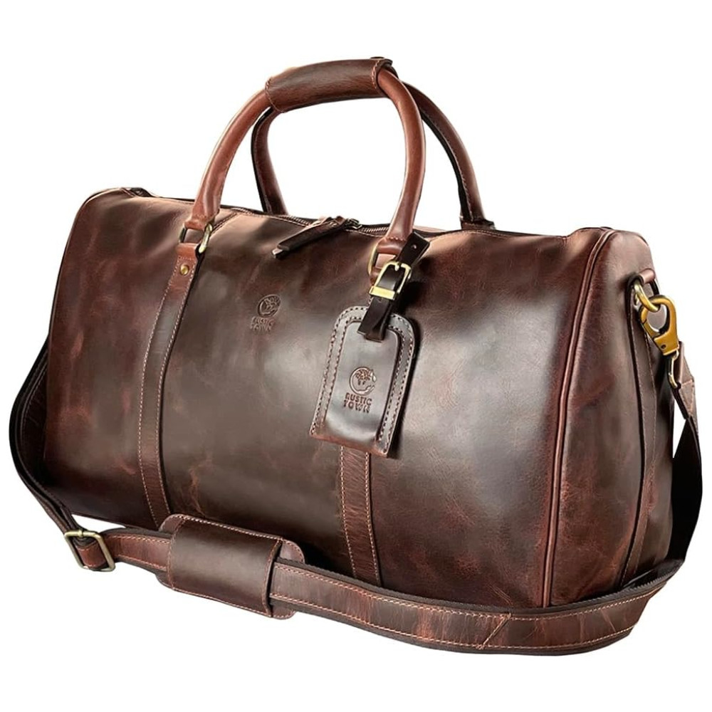 Rustic Town Bolsa de Viagem de Couro Legítimo Marrom