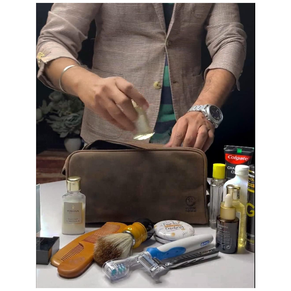Rustic Town Necessaire Masculina Vintage de Couro com Forro à Prova dÁgua Marrom
