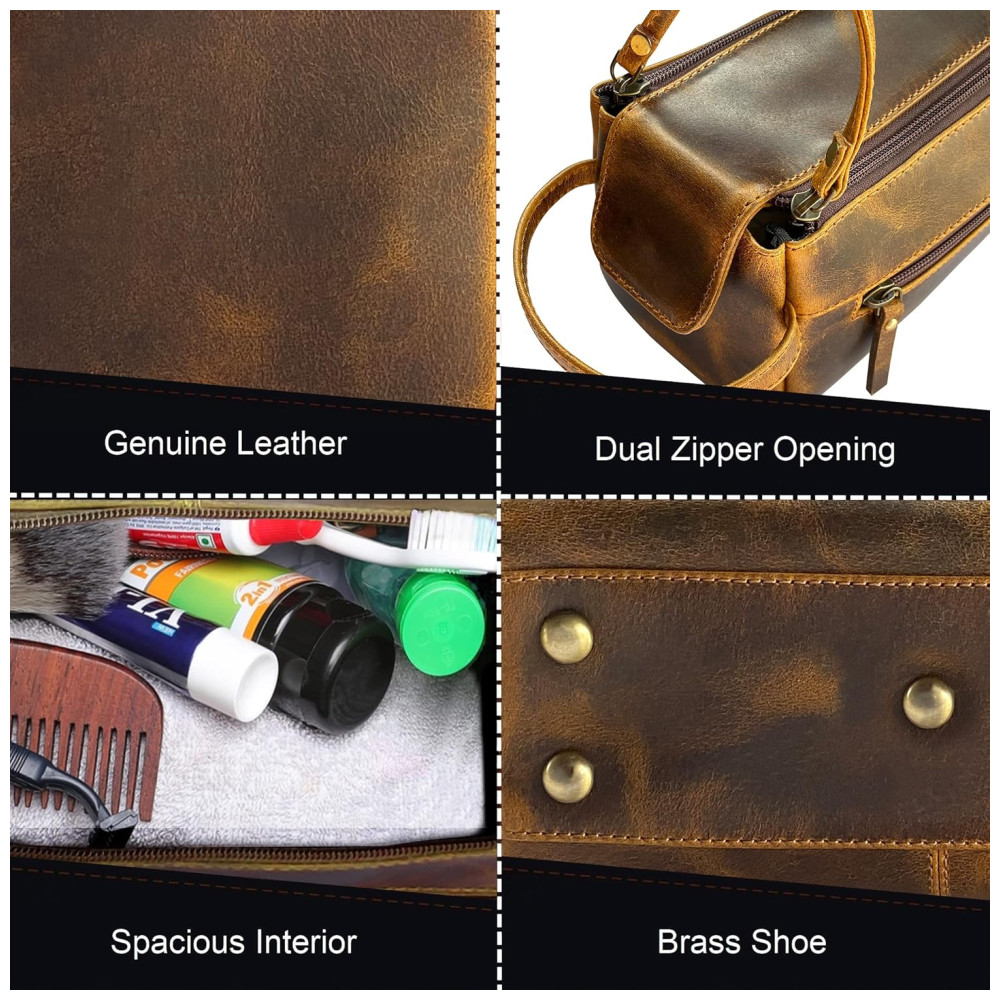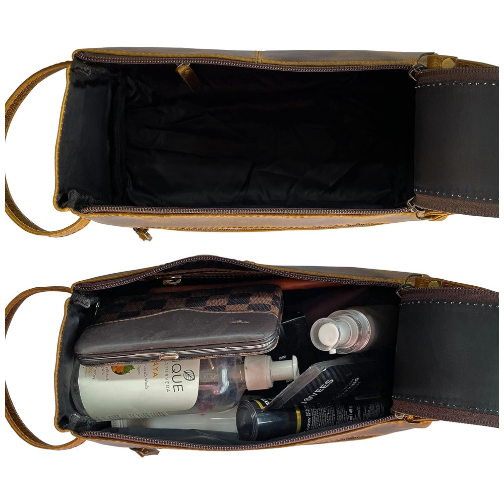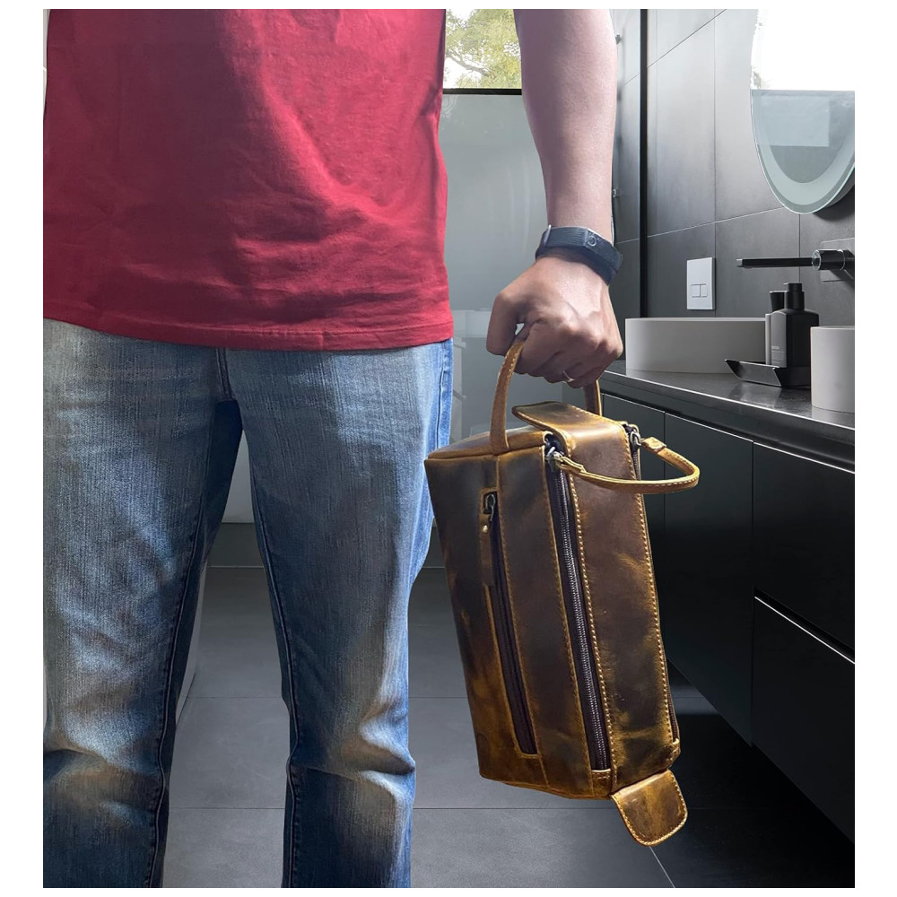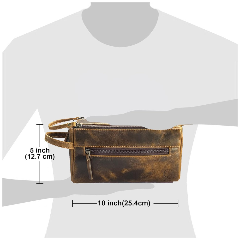 Rustic Town Necessaire Masculina Vintage de Couro com Forro à Prova dÁgua Marrom