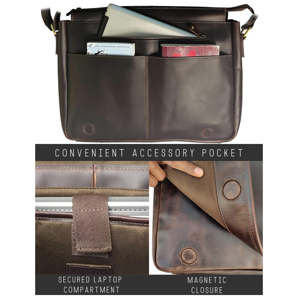 Rustic Town SFR151104ADN D Bolsa Pasta de Couro Masculina para Laptop Marrom