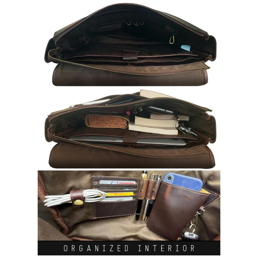 TERNOS PARA NEGÓCIOS OU CASUAIS … tem aquele estilo de mensageiro de couro difícil de conseguir enquanto é urbano e moderno com fivelas e acessórios de latão, forro e costura resistentes e zíperes YKK