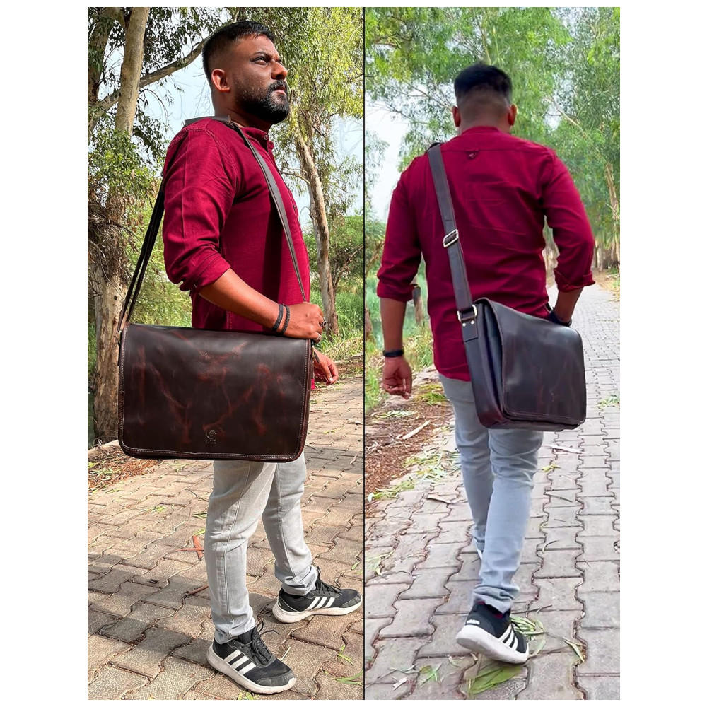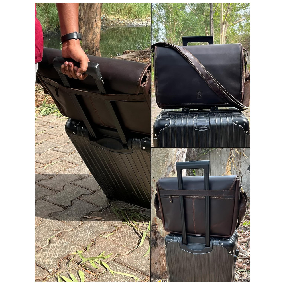 AJUSTE PARA O CONFORTO para aquelas viagens longas, a alça de ombro nesta bolsa de couro para laptop é totalmente ajustável há também uma pulseira de segurança para manter as coisas seguras em qualquer lugar