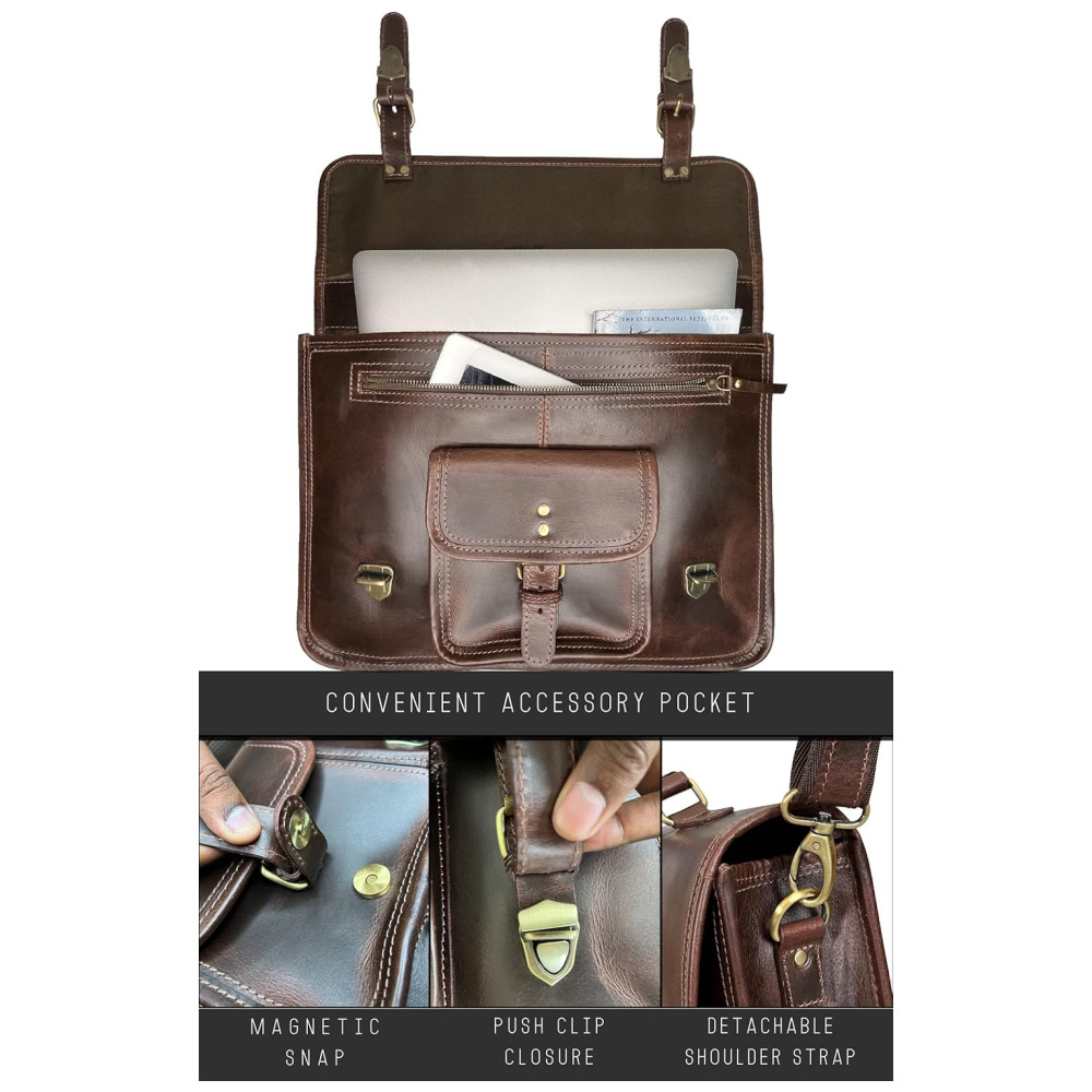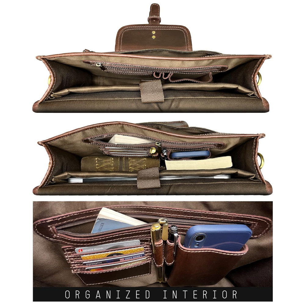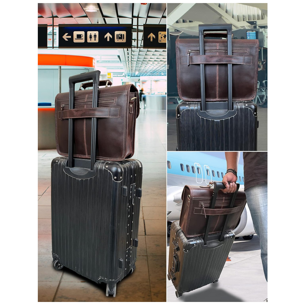 AJUSTE PARA O CONFORTO para aquelas viagens longas, a alça de ombro nesta bolsa de couro para laptop é totalmente ajustável há também uma pulseira de segurança para manter as coisas seguras em qualquer lugar