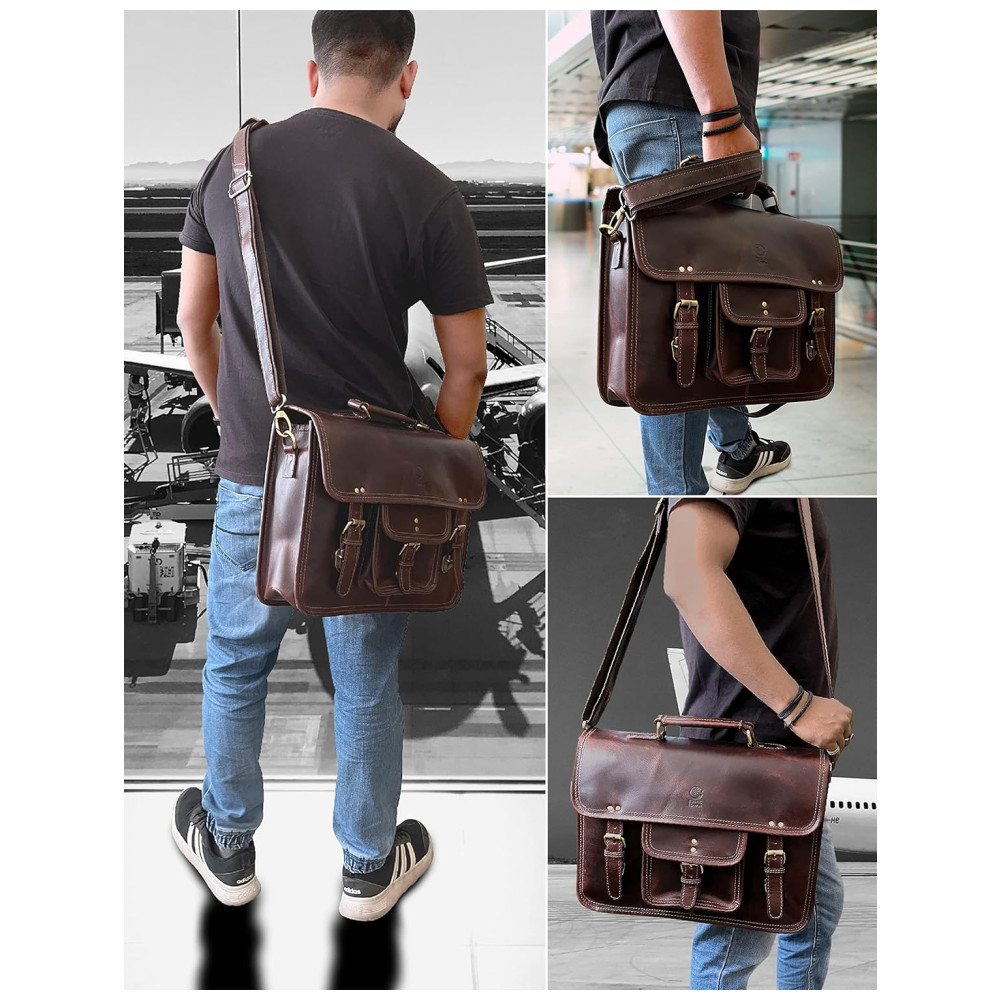COURO DE BÚFALO ROBUSTO REAL … Couro de grão superior, não PU ou falso, mas natural, bonito e feito à mão esfregada com óleo e desgastada, esta bolsa melhora com o tempo e cheira muito bem