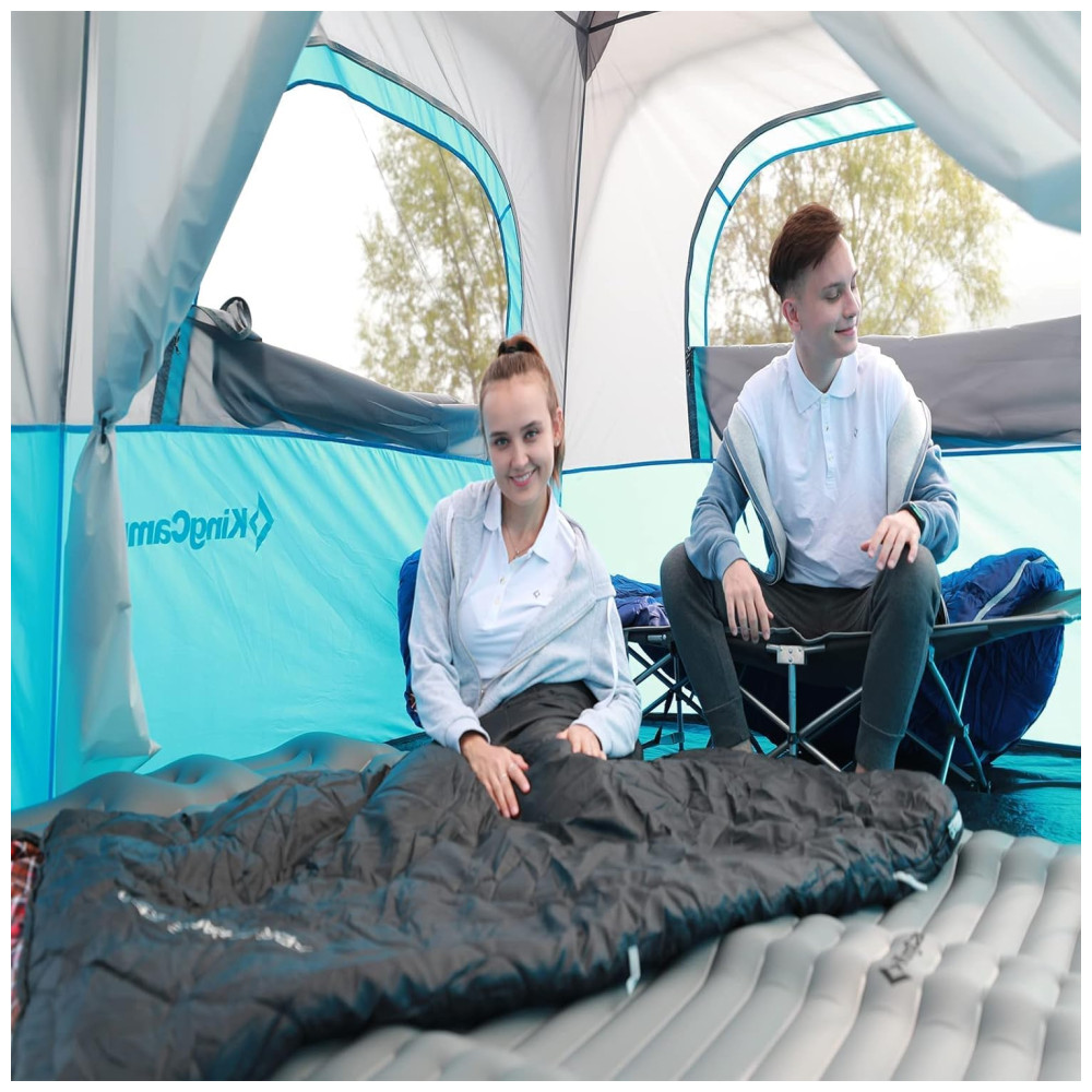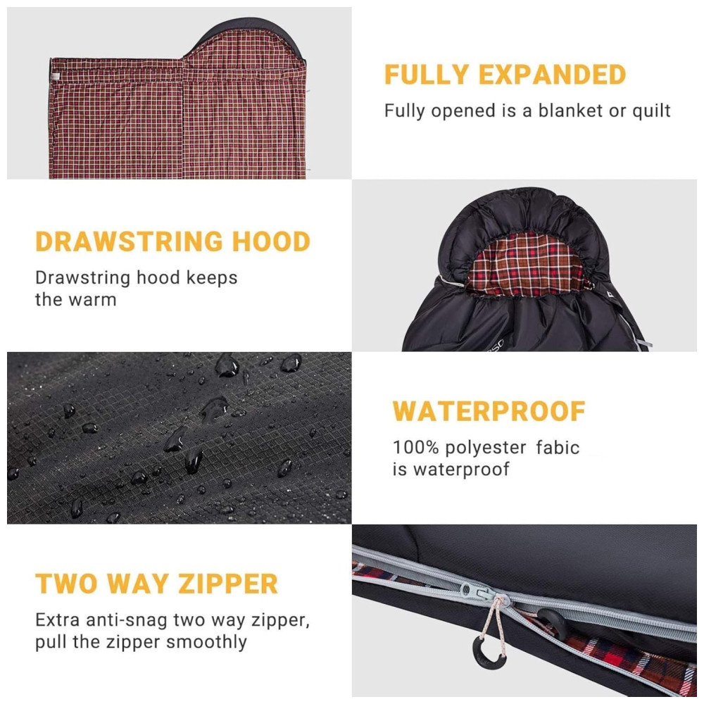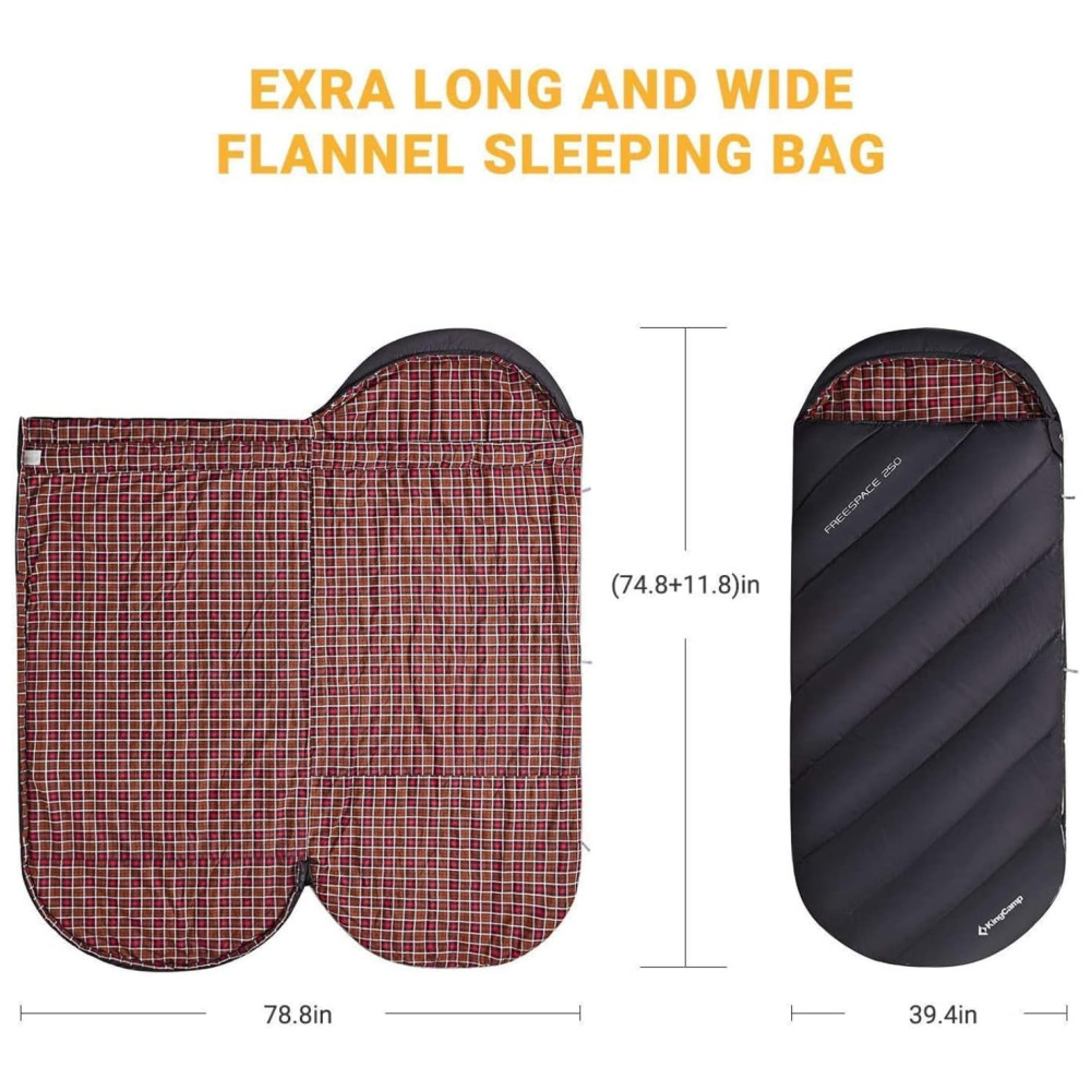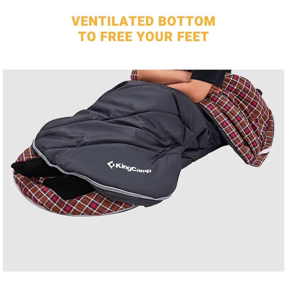 Quente e aconchegante Os sacos de dormir KingCamp para adultos com enchimento de fibra oca de 250g, e forro de flanela 100 algodão oferecem excelente calor e conforto durante toda a noite. Nosso saco de dormir de acampamento adota um design de acolchoado diagonal, que pode fixar melhor o algodão, bloquear a temperatura de cada centímetro do saco de dormir quente para aumentar o calor do fundo. É muito adequado para atividades ao ar livre no outono, verão, primavera.