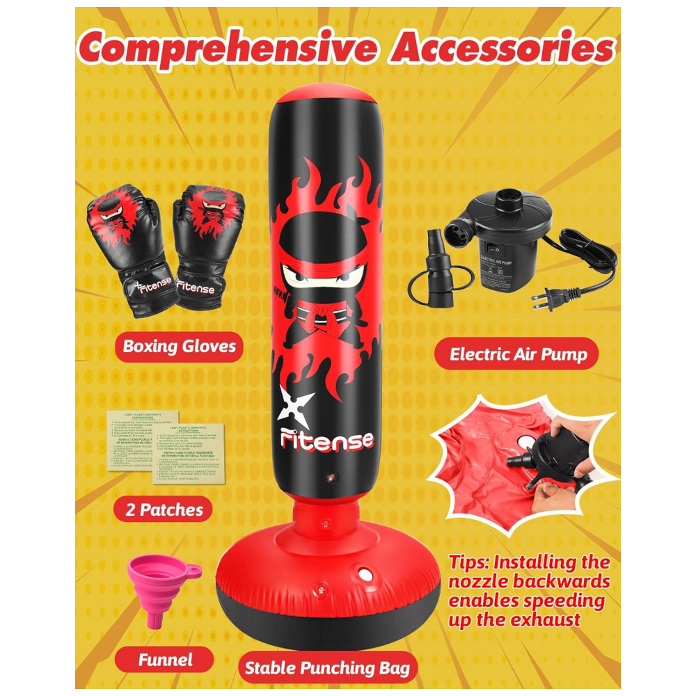 Saco de Pancadas Inflável Infantil Fitense 160 cm Red Ninja com Luvas e Bomba Elétrica