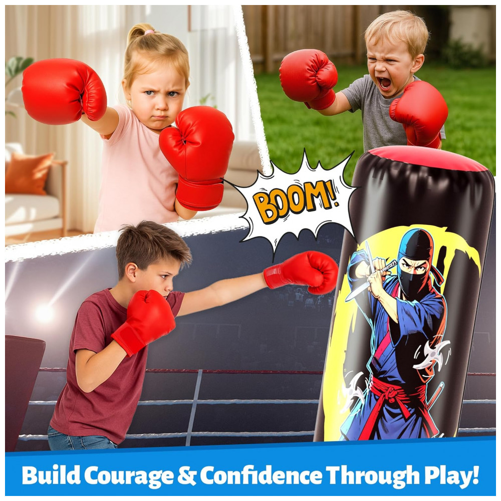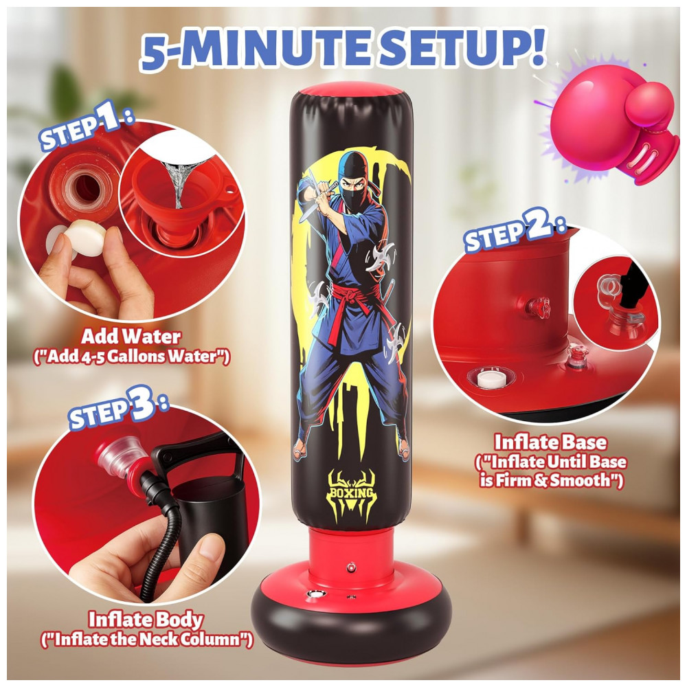 Saco de Pancadas Inflável Infantil JOY SPOT! 168 cm Ninja & Herói com Luvas