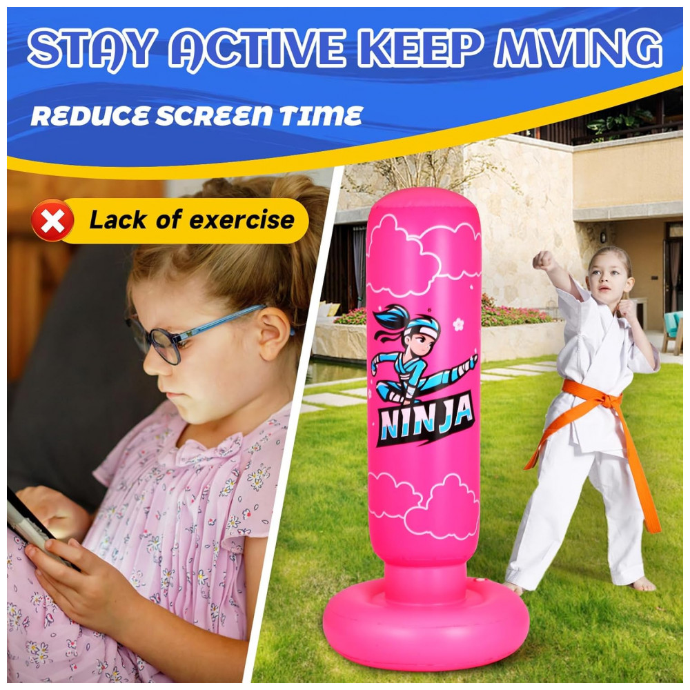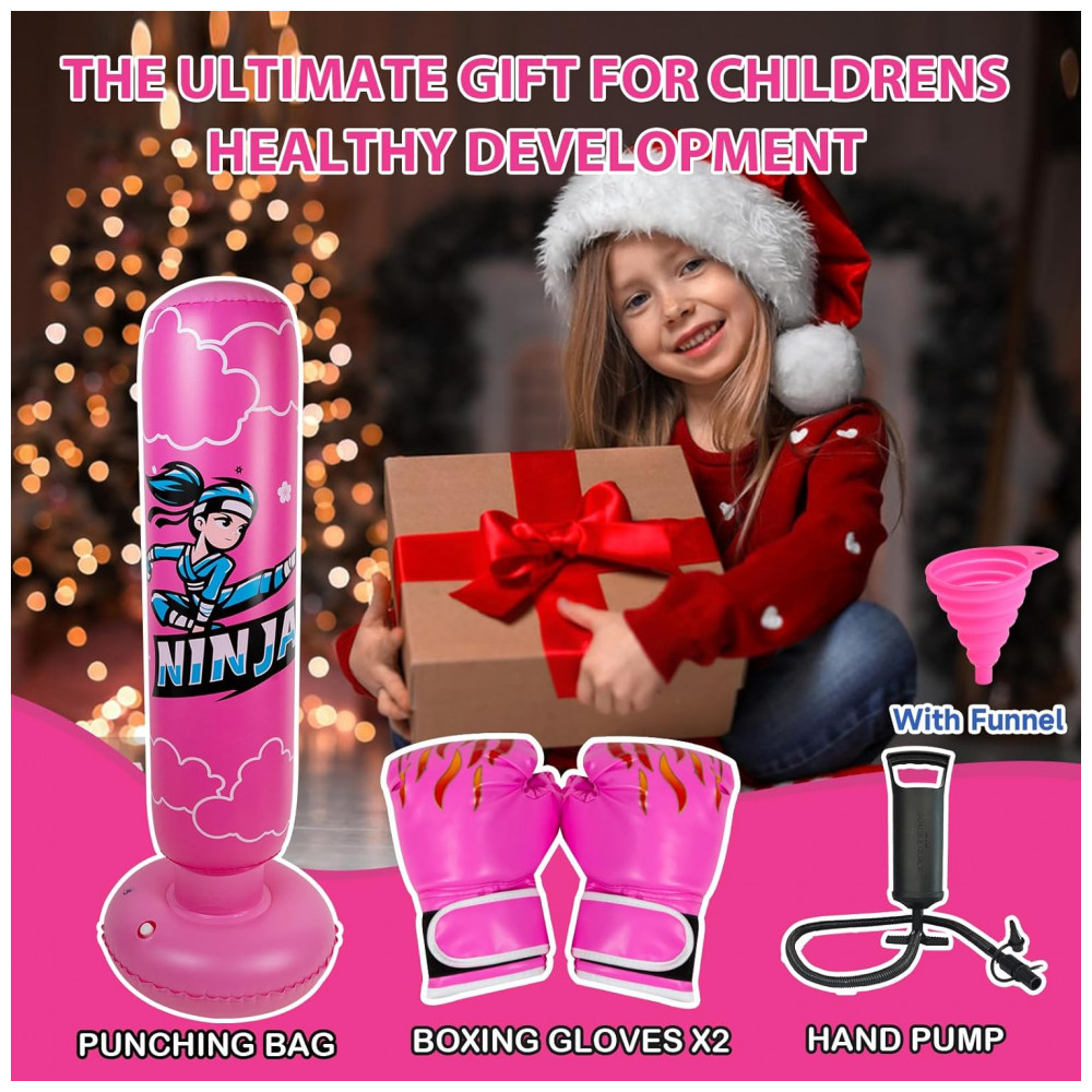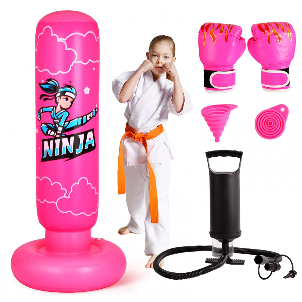 Saco de pancadas inflável infantil Onirii ninja rosa 168cm PVC com luvas e bomba de