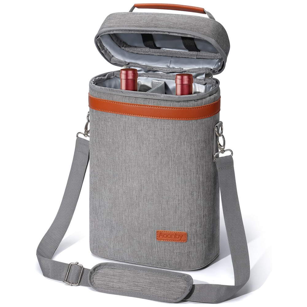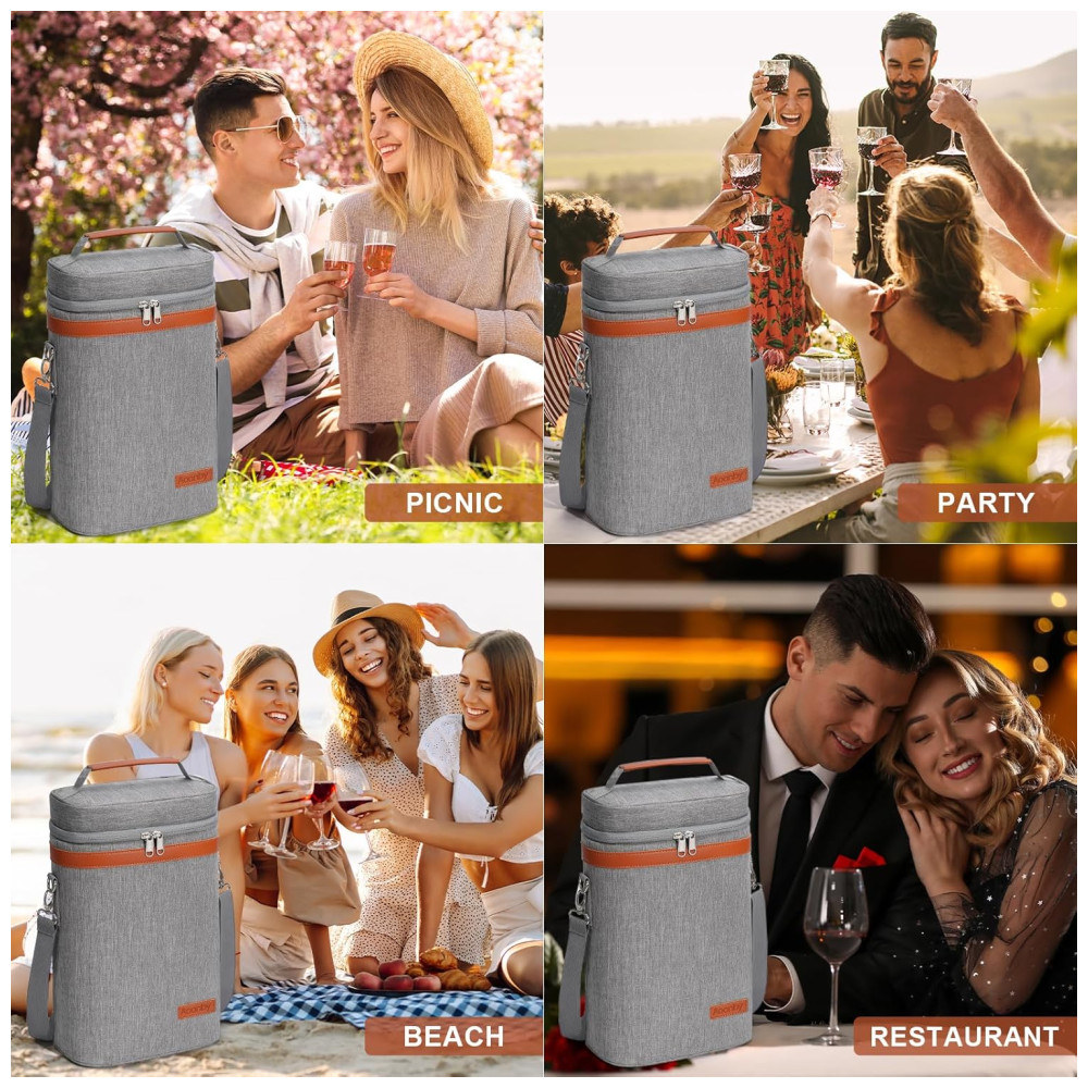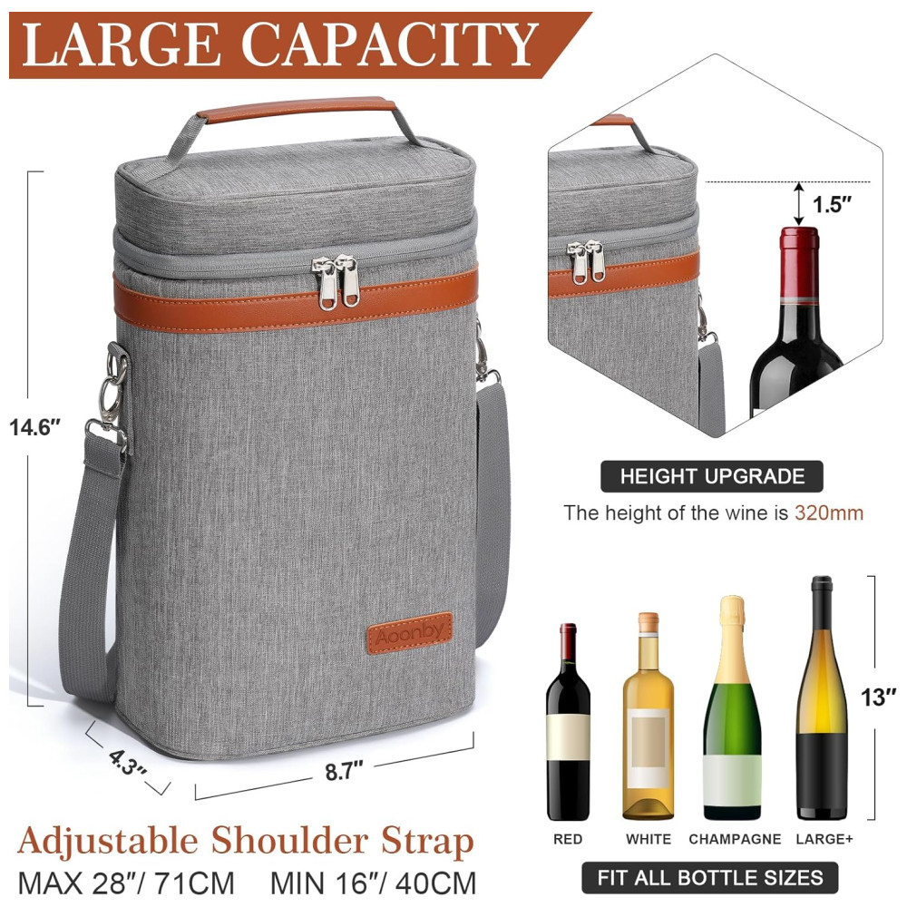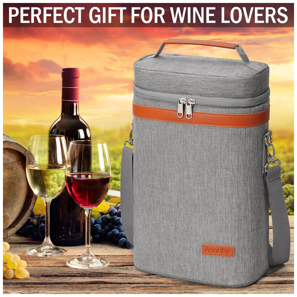 Sacola Térmica para 2 Garrafas de Vinho à Prova de Vazamentos Isolada para Viagem Piquenique Praia Jantar Festa Presentes de Natal CinzaAoonby