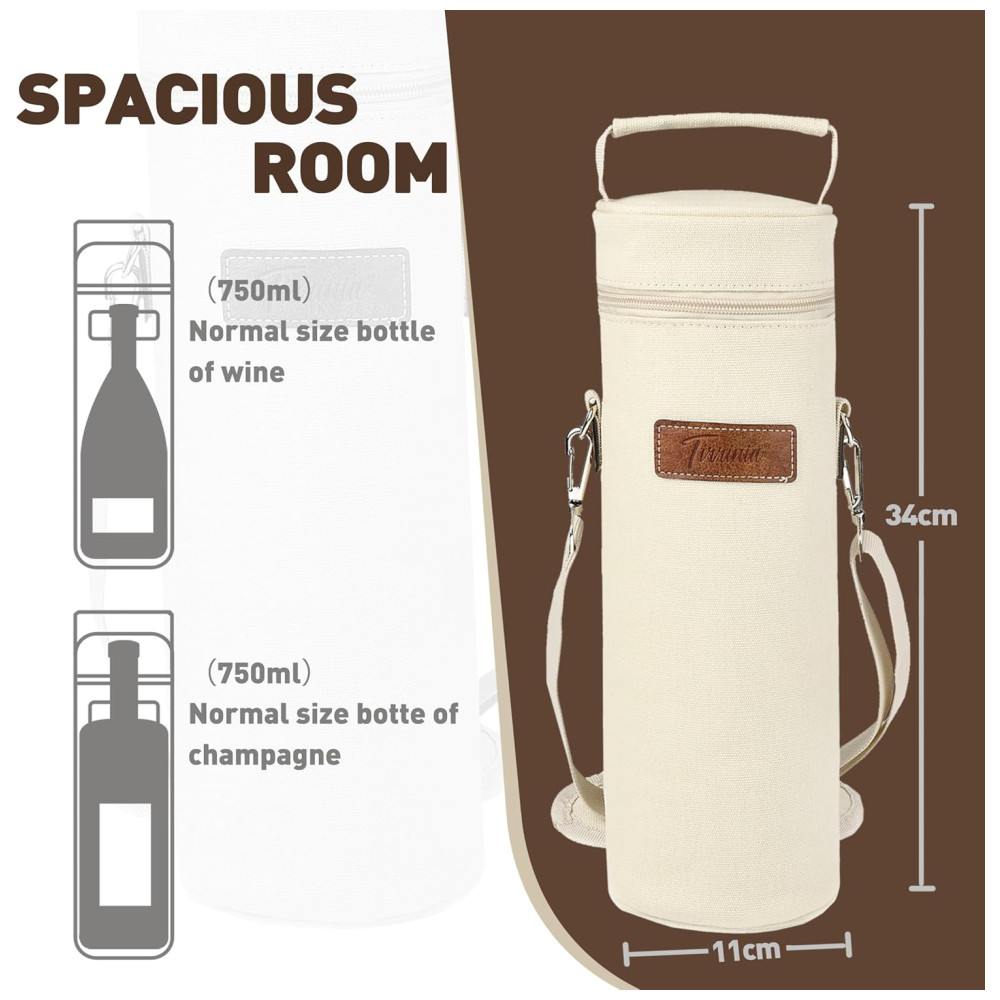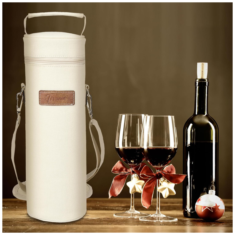Sacola Térmica para Vinho Tirrinia – Portátil e Isolada Perfeita para Viagens Restaurantes Degustações e Presente para Amantes de Vinho – Bege