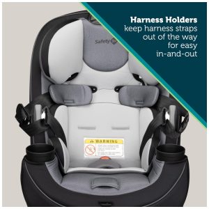 Fácil de colocar, fácil de retirar os suportes do arnês mantêm o arnês em uma posição aberta para que seja fácil colocar e retirar seu filho do assento