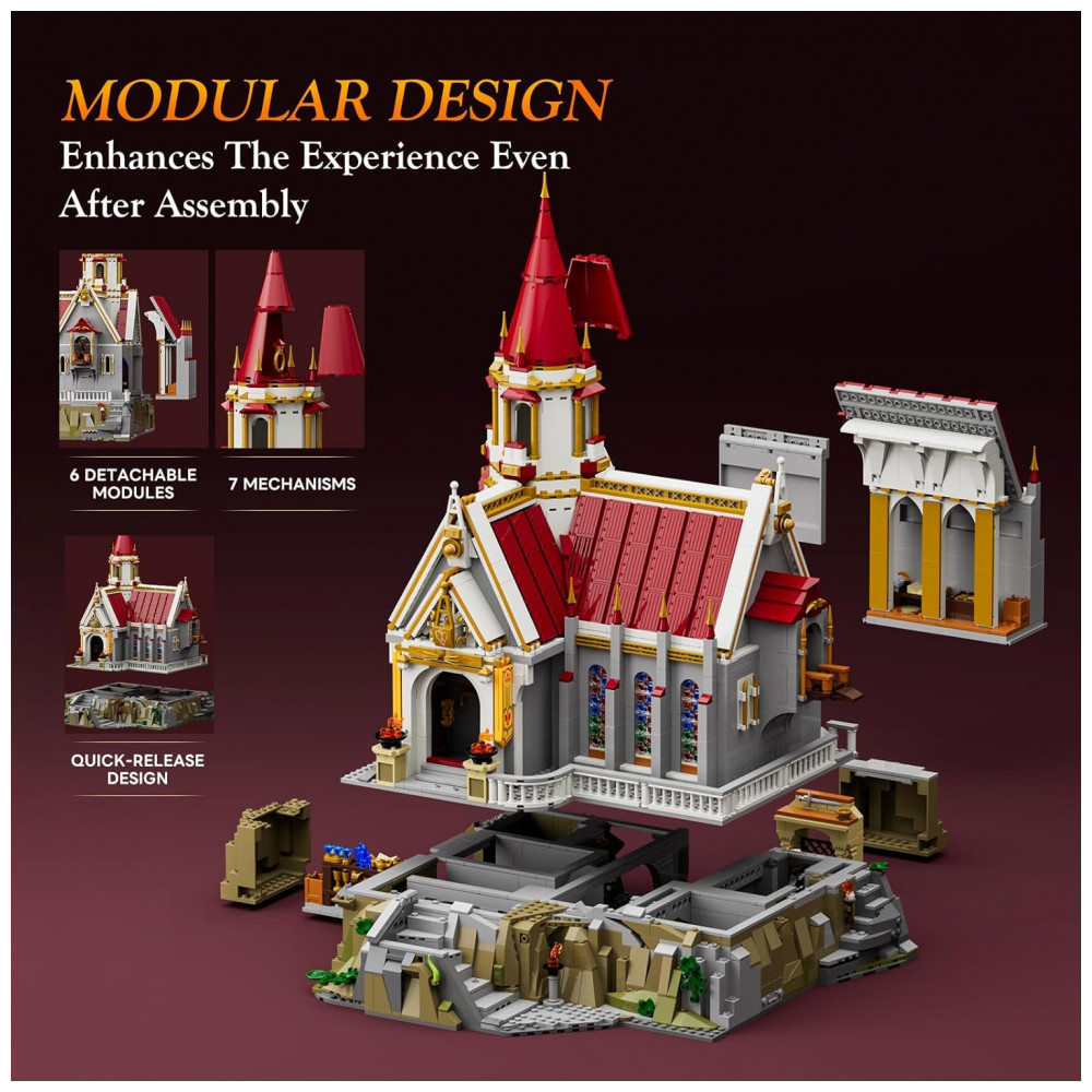 Destinado a montagem modular avançada, reforça habilidades construtivas complexas e criação de dioramas medievais interativos.