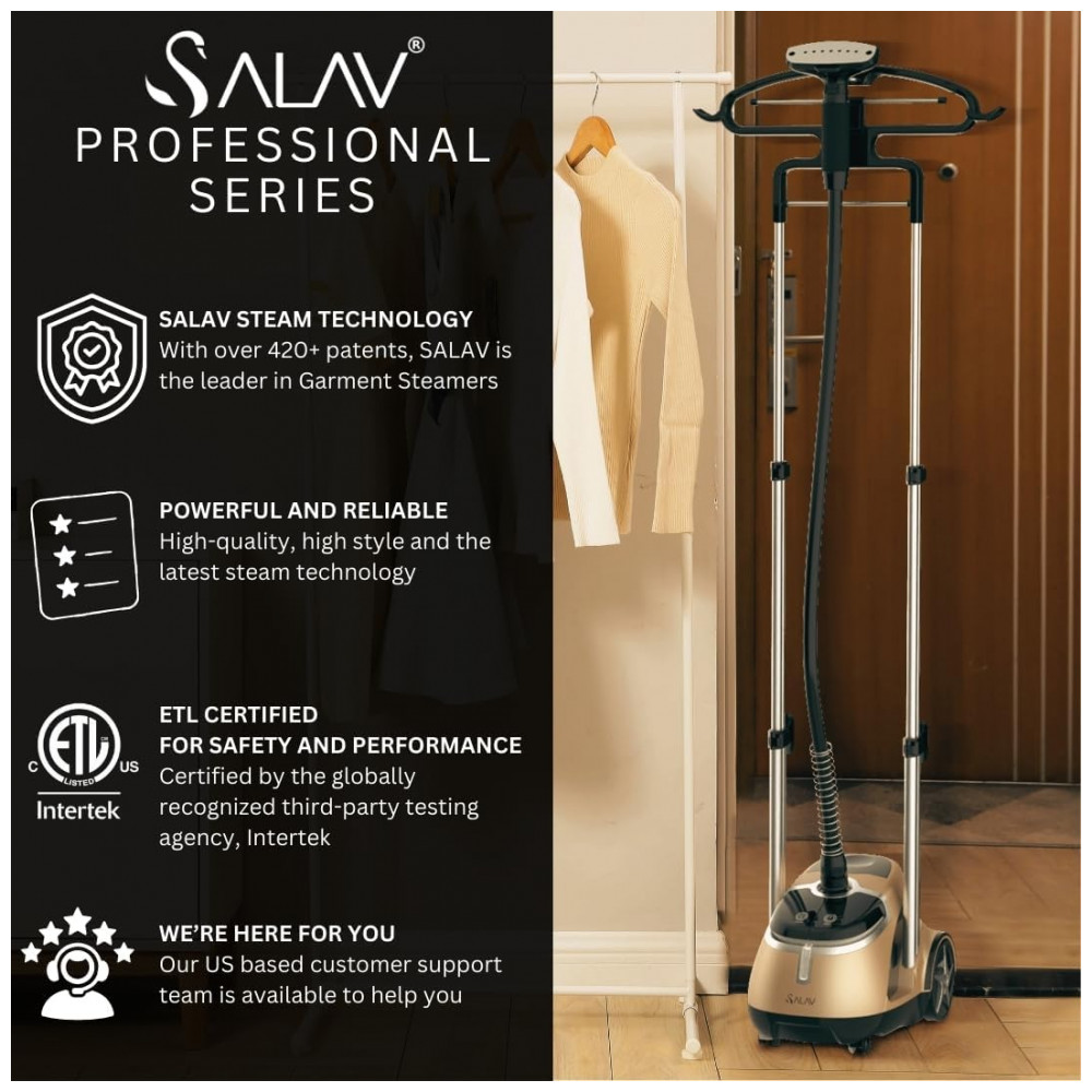 SALAV Deluxe Edição Limitada Série Profissional de Vaporizador de Roupas com Duplo Suporte e Pedais 3 Pacotes de Descalcificante