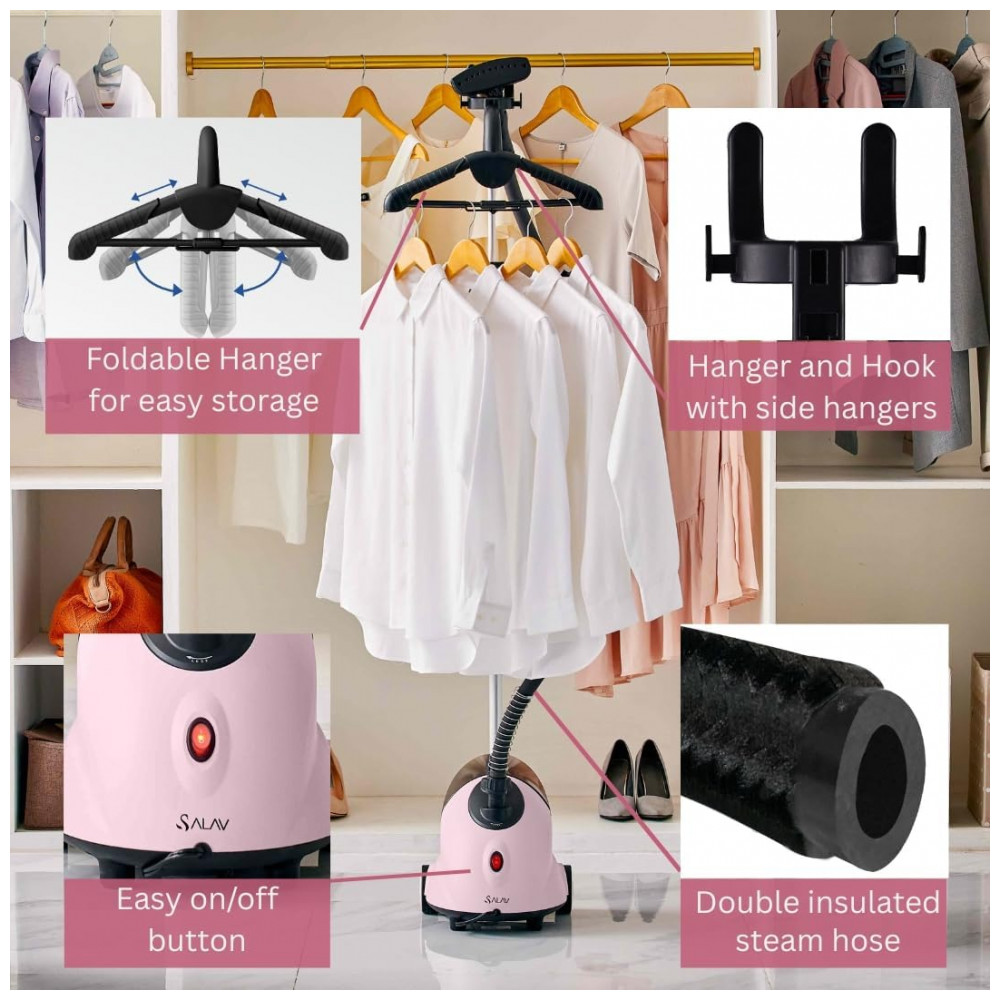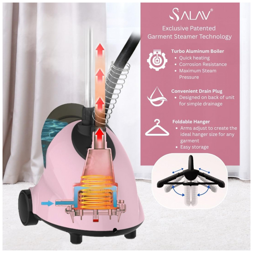 SALAV GS18DJ: PassadeiraSteamer e Vaporizador de Roupas Vertical com Rodas para Movimentação Fácil