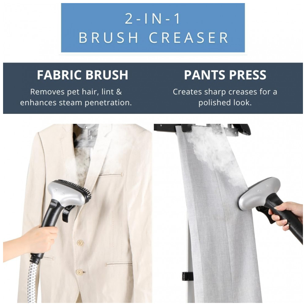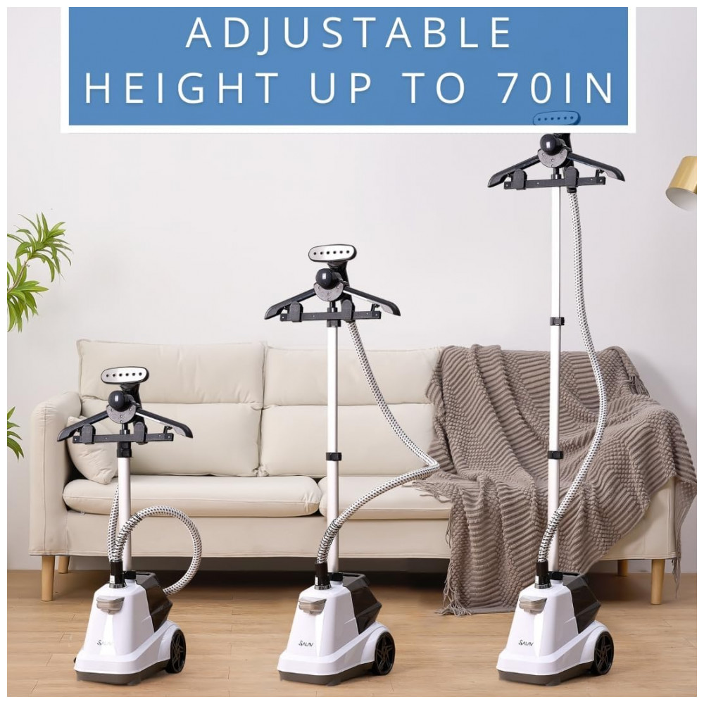 O Vaporizador de Roupas SALAV é a escolha inteligente para quem busca praticidade e eficiência na remoção de rugas. Com desligamento automático para segurança, evitando preocupações com falta d’água, este vaporizador profissional de 1800W oferece vapor potente, perfeito para roupas, cortinas, roupas de cama e estofados. Com um generoso tanque de água de 3 litros, desfrute de mais de 90 minutos de vapor contínuo sem a necessidade de reabastecimento. Seu design versátil e funcional inclui um suporte estável, sistema de controle por pedal e barra telescópica de alumínio para fácil armazenamento. Com rodas para mobilidade, bico de vapor ergonômico e mangueira longa, oferece praticidade e desempenho excepcionais.