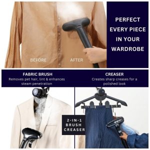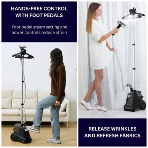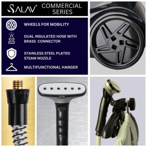 O Vaporizador de Roupas SALAV é a escolha perfeita para quem busca praticidade e eficiência na remoção de rugas! Com 1800 watts de potência de vapor profissional, ele desamassa facilmente roupas, cortinas, roupas de cama e estofados. Possui um tanque de água extra grande de 3 litros, que proporciona mais de 90 minutos de vapor contínuo, sem necessidade de reabastecimento. Seu design versátil inclui um suporte multifuncional, sistema de controle por pedal e um barra telescópica de alumínio para facilitar o armazenamento. Com rodas para fácil mobilidade, bico de vapor ergonômico e mangueira longa, este vaporizador foi projetado para oferecer conveniência máxima e desempenho excepcional.