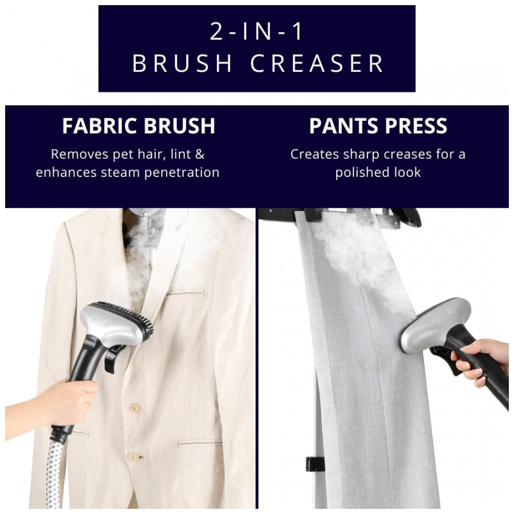 Componentes Inclusos: Vaporizador de Roupas Comercial X3, Escova de Tecido e Adaptador para Calças