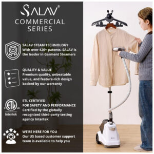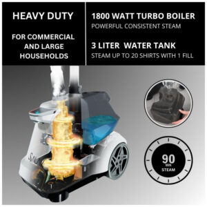 Desfrute de um vapor potente de 1800W projetado para uso profissional e doméstico. O fluxo contínuo de vapor remove rugas rapidamente, sendo perfeito para lojas de roupas, boutiques, hotéis e uso diário em casa. Com um reservatório de água extra grande de 3 litros, proporciona mais de 90 minutos de vapor contínuo. Acione o vapor sem usar as mãos com um conveniente pedal, garantindo facilidade de controle. Este vaporizador de roupas em pé de tamanho grande e desempenho comercial é ideal para remover rugas, odores e bactérias de tecidos diversos, como seda, algodão, lã, poliéster, estofados e cortinas. Potente e eficiente, com 1800 watts de potência, é a escolha ideal para eliminar rugas em qualquer tipo de tecido.