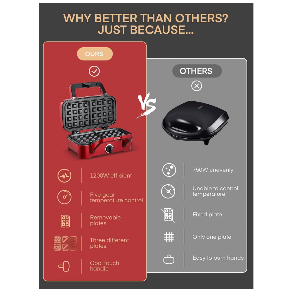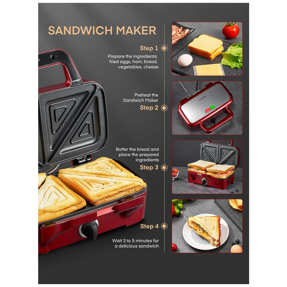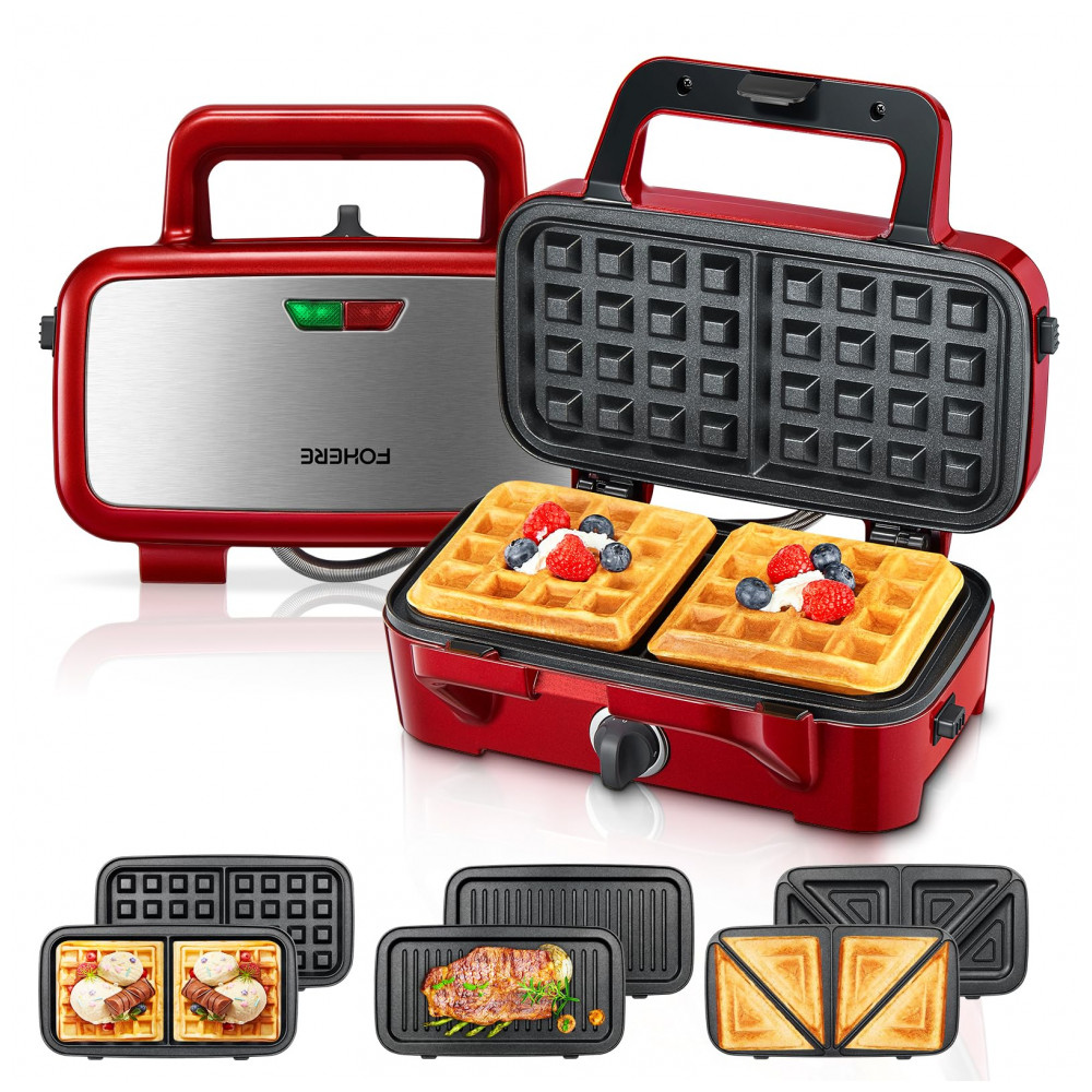 Sanduicheira 3 em 1 FOHERE Vermelha com Placas Removíveis Revestimento Antiaderente 1200W 110V