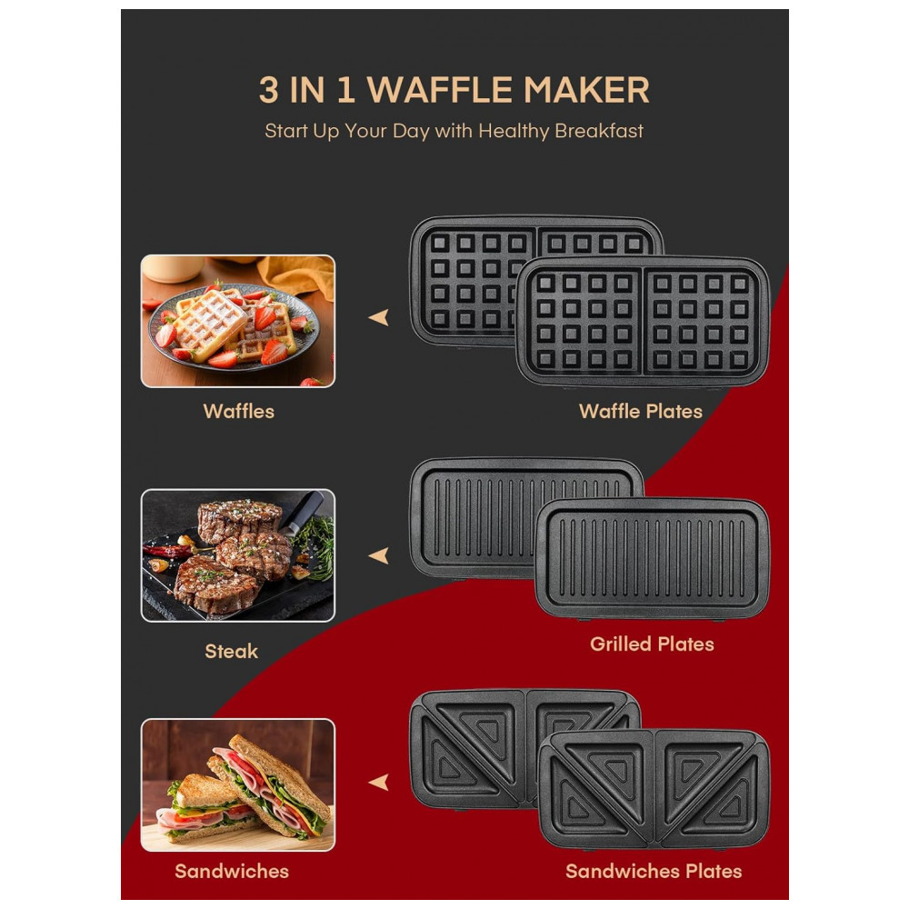 A Sanduicheira 3 em 1 FOHERE é um eletrodoméstico compacto voltado para preparo de sanduíches, waffles e grelhados em casa, viagem ou escritório. O equipamento combina três placas removíveis – para sanduíches, waffles e grelhar carnes e vegetais – todas com revestimento antiaderente de teflon, resistente à água e ao óleo, facilitando a limpeza após o uso. Cada placa pode ser trocada conforme o tipo de alimento desejado, permitindo variação de receitas sem a necessidade de mais de um aparelho.