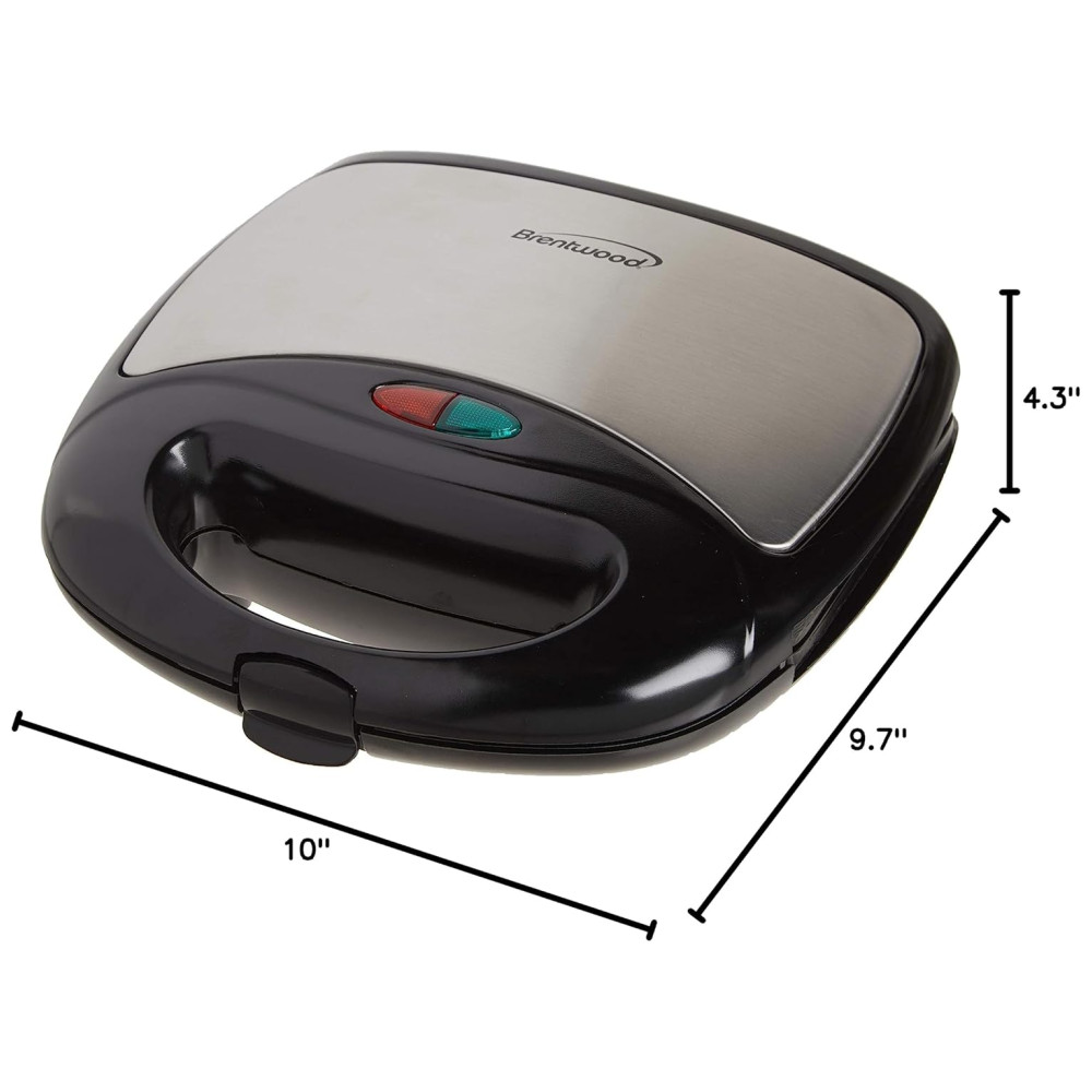 Use uma sanduicheira antiaderente dupla antiaderente Brentwood TS 240B para grelhar até 2 sanduíches selecionados com recortes diagonais fáceis de cortar. Experimente presunto de queijo, queijo grelhado, calzones pepperoni, omeletes, sobremesas e muito mais. Potentes sanduíches grelhados de 750 watts na perfeição. A operação é simples com alças de toque frio e indicadores de energia, pré reservados. Remoção de sanduíches facilita facilmente a grelha às superfícies antiaderentes. Economize espaço em sua cozinha com tampa de travamento de segurança, enrolamento de cabo conveniente e zenamento vertical compacto.
