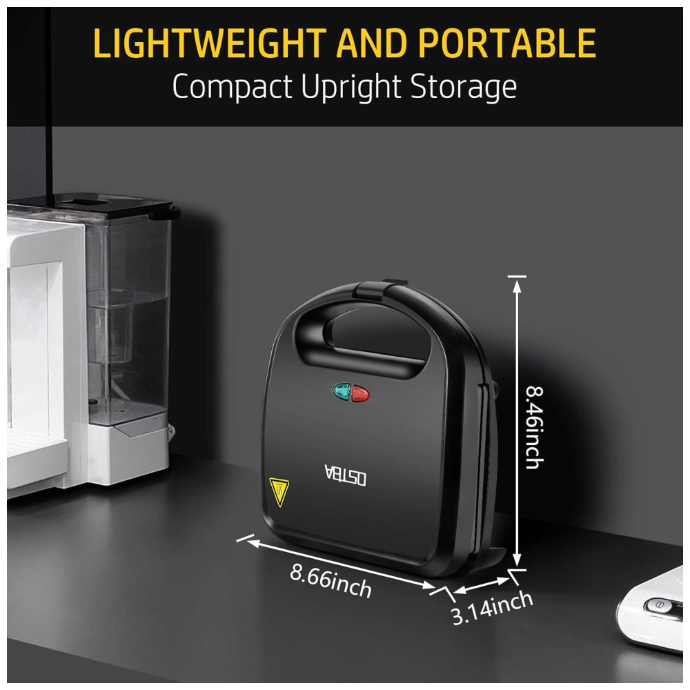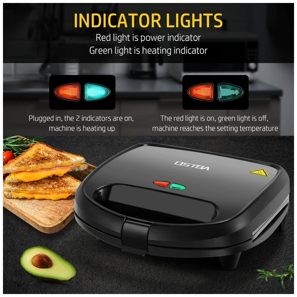 Faça sanduíches quentes e muito mais Obtenha a sanduicheira OSTBA, ela cozinha a sanduicheira quente rapidamente pela manhã, permite que você tome um café da manhã rápido e saudável. A sanduicheira prensa sanduíches, grelha omeletes e até torradas em um só produto. Simples e eficiente.