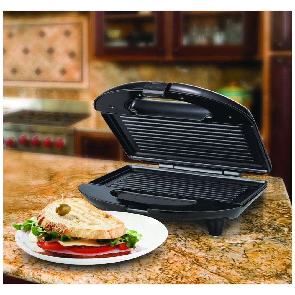 Nossa potente prensa panini de 750 W cozinha 1 a 2 sanduíches em minutos