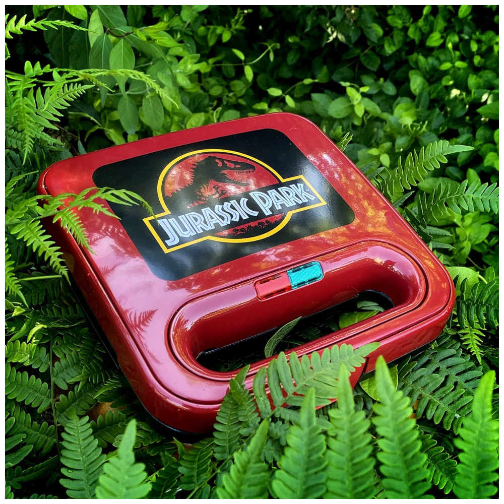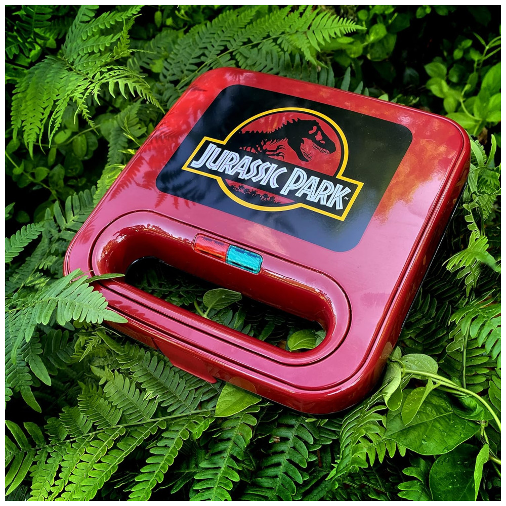 Sanduicheira Compacta Tema Jurassic Park com Superfície Antiaderente e Abertura 180º 110V Uncanny Brands Vermelha