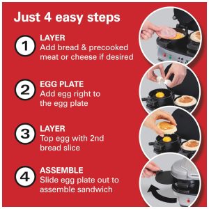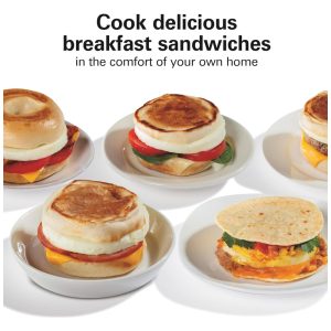 Descrição do produto Esqueça o drive thru de fast food. Com o Sandui Hamilton Beach Breakfast, você pode desfrutar de um sanduíche caseiro quente da manhã de 5 minutos. Basta colocar os ingredientes, construir uma base do seu sanduíche na camada inferior, colocar o ovo na chapa de cozimento e fechar a tampa. Deslize a placa de cozimento para fora e seu sanduíche se monta. Abra a tampa e seu sanduíche quente de café da manhã pronto para comer. O livro de receitas oferece uma variedade de opções de pacote de café da manhã, presunto e queijo exclusivo ou pacote de queijo cheddar, maçã, maçã e croissant de ovo. História da marca por Hamilton Beach
