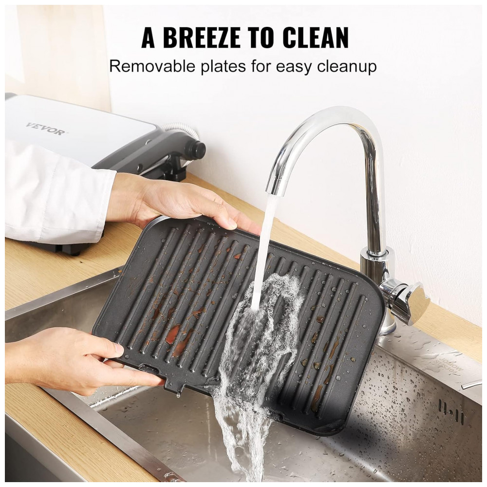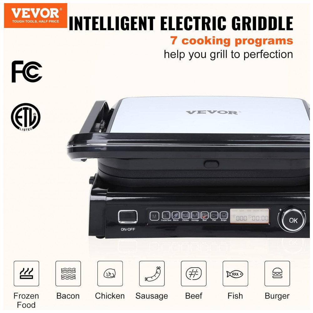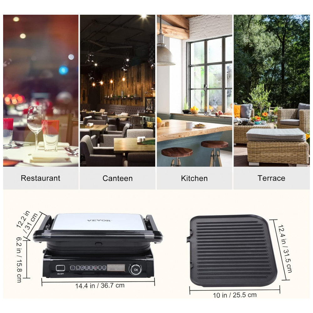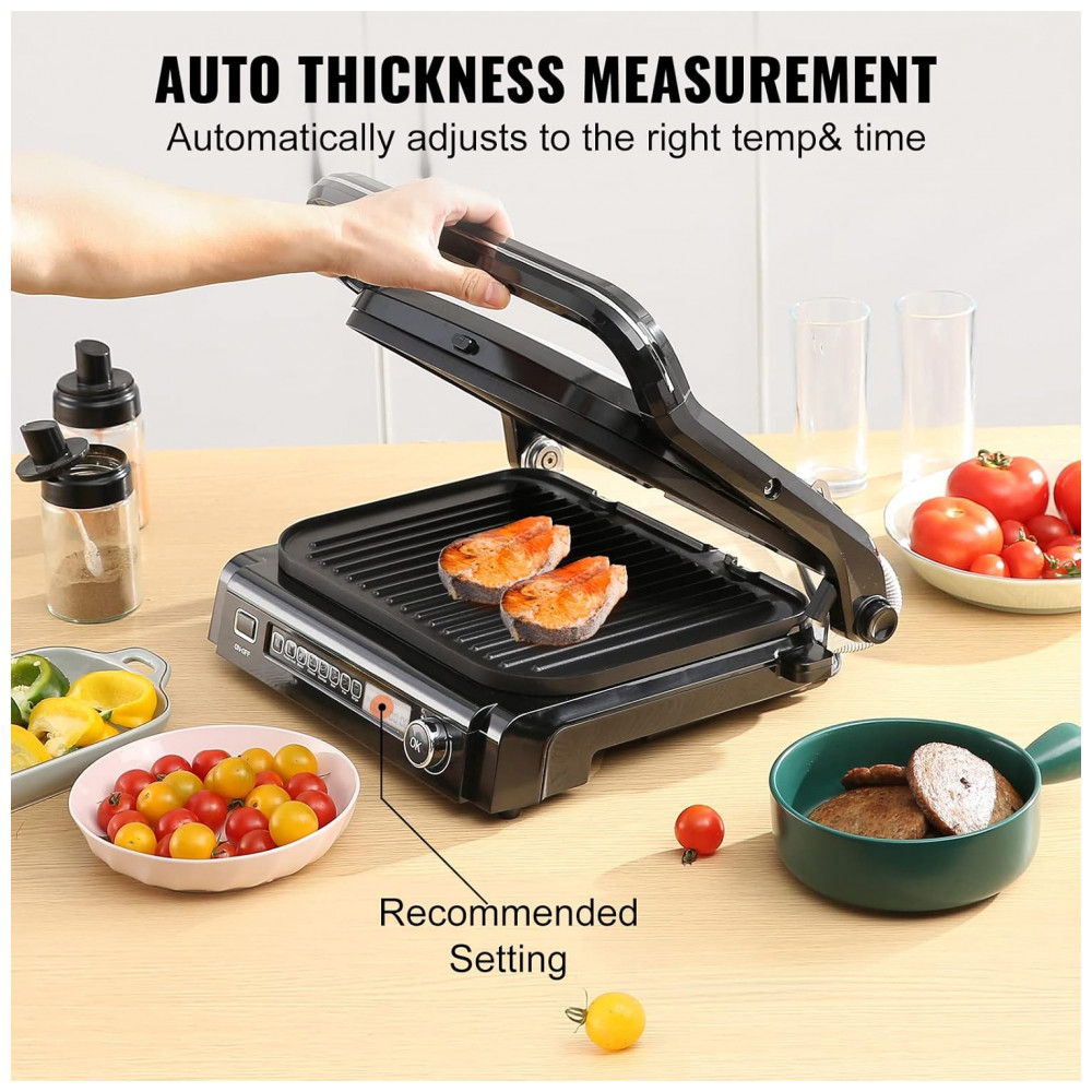 Sanduicheira e Grill Elétrico 7 em 1 de com Superfície Antiaderente e Removível Controle de Temperatura e Display LCD 1800W 110v VEVOR Preta