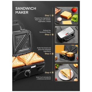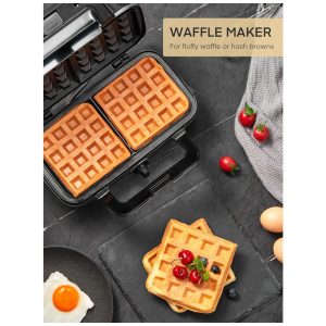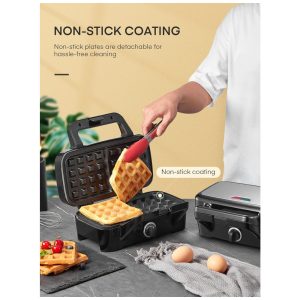 Esta sanduicheira também pode ser usada como uma máquina de waffle 3 em 1, oferecendo três placas removíveis para grelhar sanduíches, waffles e grelhar. As placas são revestidas de teflon, um revestimento antiaderente de alta qualidade, repelente de água e óleo, tornando as fáceis de limpar.