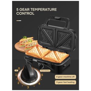 Esta sanduicheira FOHERE é uma excelente escolha para quem deseja preparar um café da manhã rápido e eficiente para toda a família. Com uma potência de 1200 W, esta sanduicheira permite torrar mais sanduíches em menos tempo do que outras sanduicheiras com menor potência. Você pode preparar dois sanduíches quentes por vez, ou seja, quatro sanduíches triangulares. Além disso, a FOHERE oferece controle de temperatura 5Gears, permitindo ajustar facilmente o sabor que você deseja.