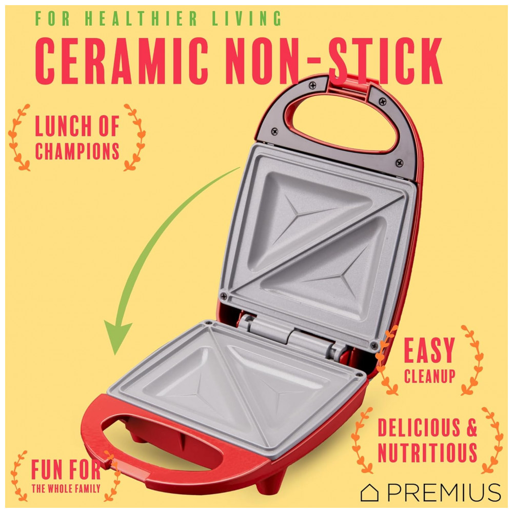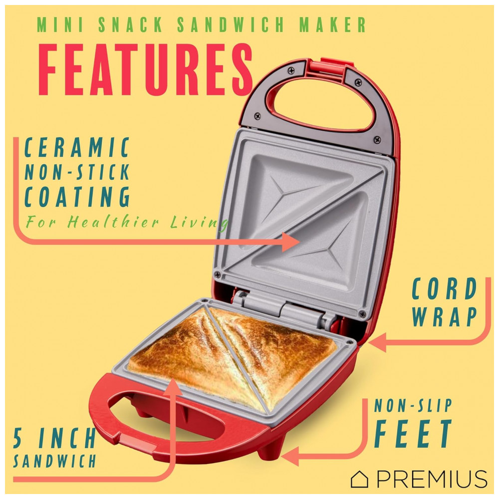 Sanduicheira Mini Snack Maker Cerâmica Antiaderente Luz Indicadora Molde de 127×112 Centímetros Ideal para Sanduíches Tostadas PanquecasPREMIUS