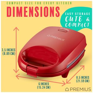 Sanduicheira Mini Snack Maker Cerâmica Antiaderente Luz Indicadora Molde de 127×112 Centímetros Ideal para Sanduíches Tostadas PanquecasPREMIUS
