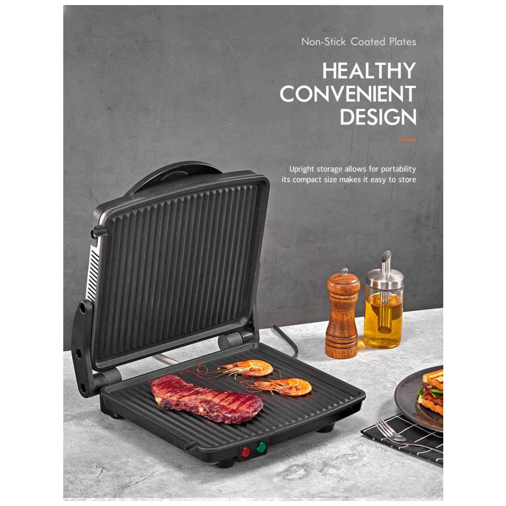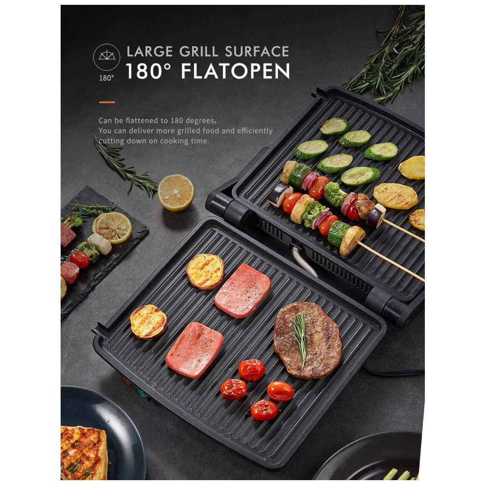 Aquecimento rápido saída de alta potência de 1200 W com tecnologia de aquecimento uniforme permite que você faça uma refeição deliciosa rapidamente uma opção ideal para desfrutar de autênticos grelhados, mesmo quando você está constantemente em movimento Grande área de superfície 2 placas grandes de 28x 25cm, com capacidade para 4 fatias de sanduíches ou 6 panini médios de uma vez também pode ser nivelado em 180 graus, proporcionando mais alimentos grelhados e reduzindo com eficiência o tempo de cozimento pela metade versátil o suficiente para grelhar hambúrgueres, bifes, sanduíches, paninis, vegetais e muito mais, atende a todas as necessidades de grelhar em ambientes internos REVESTIMENTO ANTI COLANTE e fácil de limpar As grades antiaderentes são limpas facilmente escovando ou esfregando, e a bandeja coletora captura excesso de gorduras e líquidos, facilitando o descarte a caixa de aço inoxidável só precisa ser limpa com um pano úmido e macio TAMANHO COMPACTO Ideal para pequenas cozinhas, dormitórios, escritórios e até mesmo para viagens de carro O tamanho compacto ocupa pouco espaço no balcão ou prateleira, facilitando o zenamento da sua grade de contato. SE você receber um item com defeito ou não satisfeito com nosso produto, entre em contato conosco, faremos o possível para ajudá lo e dar lhe a melhor solução.
