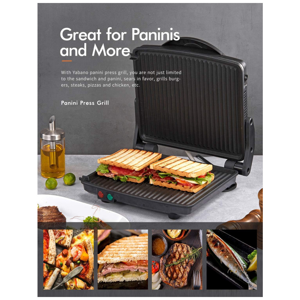 Sanduicheira Panini Grill Gourmet Pratos Revestidos Antiaderentes 4 Fatias 1200W 110v YABANO GT43 Preto