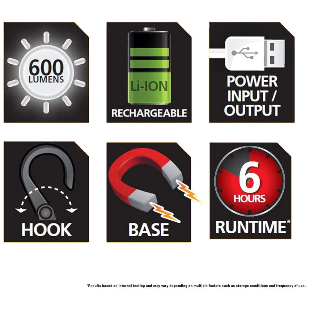 Pendurado com gancho ou montagem para superfície metálica com base magnética permite o uso de mãos livres quando necessário