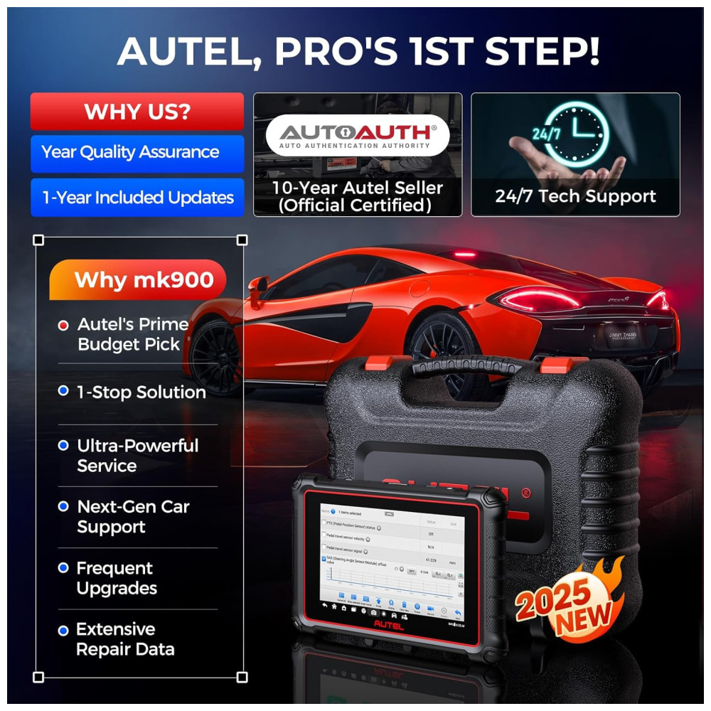 Apresentamos o Autel Scanner MaxiCOM MK900 2025, a atualização flagship que vai revolucionar sua experiência de diagnóstico automotivo. Com 40 serviços disponíveis para mais de 10.000 veículos de 1996 a 2025, este escâner oferece uma cobertura incomparável. Com 3000 testes ativos, você terá acesso a uma ampla gama de funcionalidades, incluindo diagnóstico em todos os sistemas, leitura instantânea de VIN, 7000 códigos DTC aprimorados e muito mais.