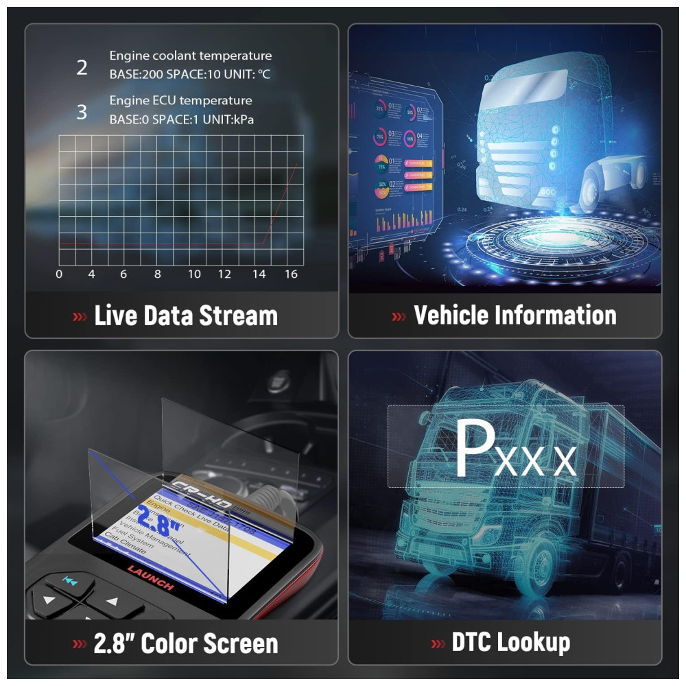 Scanner Automotivo com Diagnóstico com Modos 1 10 J1587 J1708 e J1939 12V LAUNCH CReader HD Plus Preto