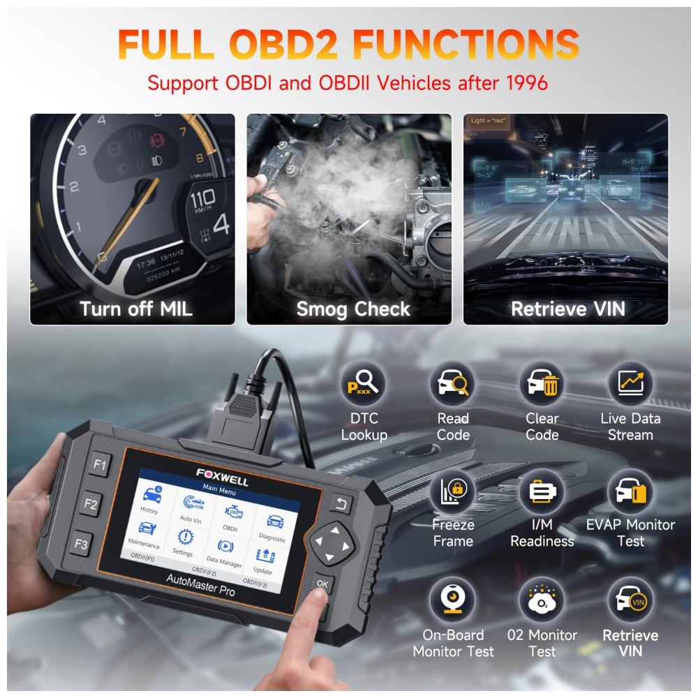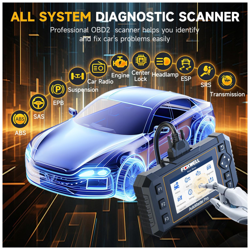 Scanner automotivo para todos os sistemas, modelo de veículo 10000 Esta ferramenta de varredura foxwell o ajudará a verificar todos os módulos elétricos controlados. Leia e apague códigos, recupere informações de ECU, exiba fluxo de dados e faça testes ativos para Motor , ABS , Transmissão , EPB , SRS , DPF , Grupo do Painel de Instrumentos , HVAC , SAS , TPMS , PAM e outros sistemas. Você tem permissão para realizar uma detecção completa e profunda desses sistemas, em vez de dirigir o veículo até a oficina mecânica.