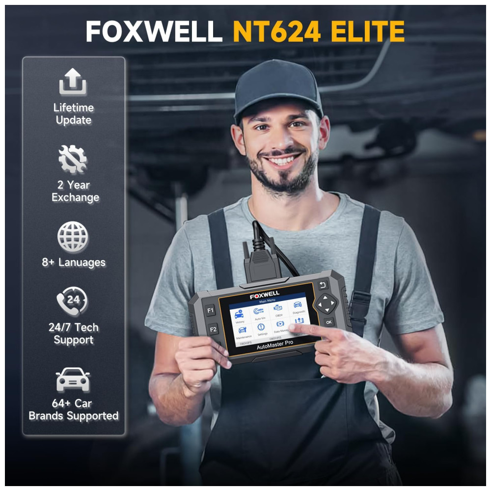 Trabalho pronto para uso Atualização gratuita para toda a vida Proteção pós venda As ferramentas de varredura automotiva NT624E podem ser usadas fora da caixa e você não precisa atualizar antes de usar, pois vem com o software existente. A caixa externa resistente evita danos ao scanner do carro. A ferramenta de atualização FoxAssist permite que você atualize e desinstale o software, salve e imprima dados, ganhando mais modelos de veículos disponíveis com base na vida útil gratuita.
