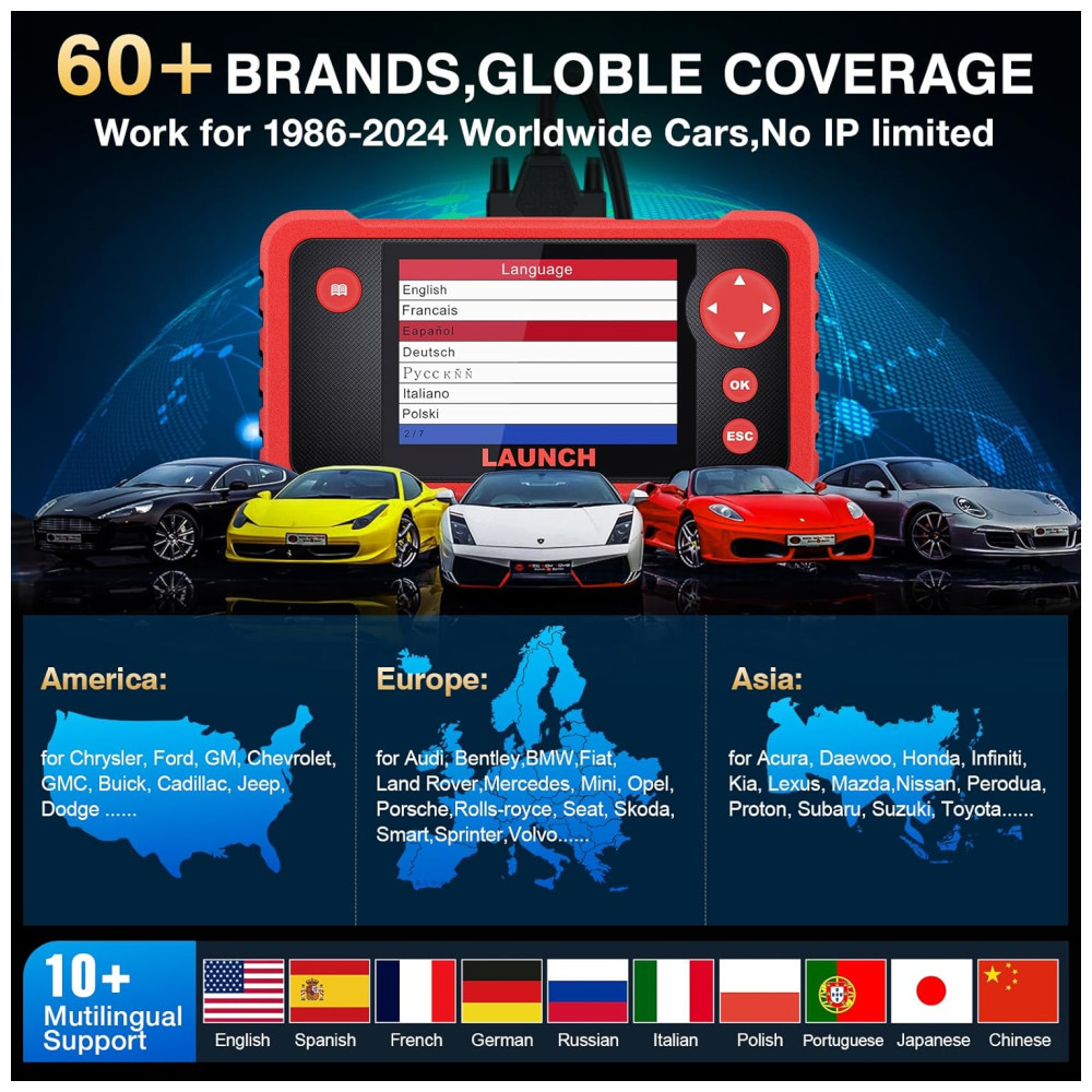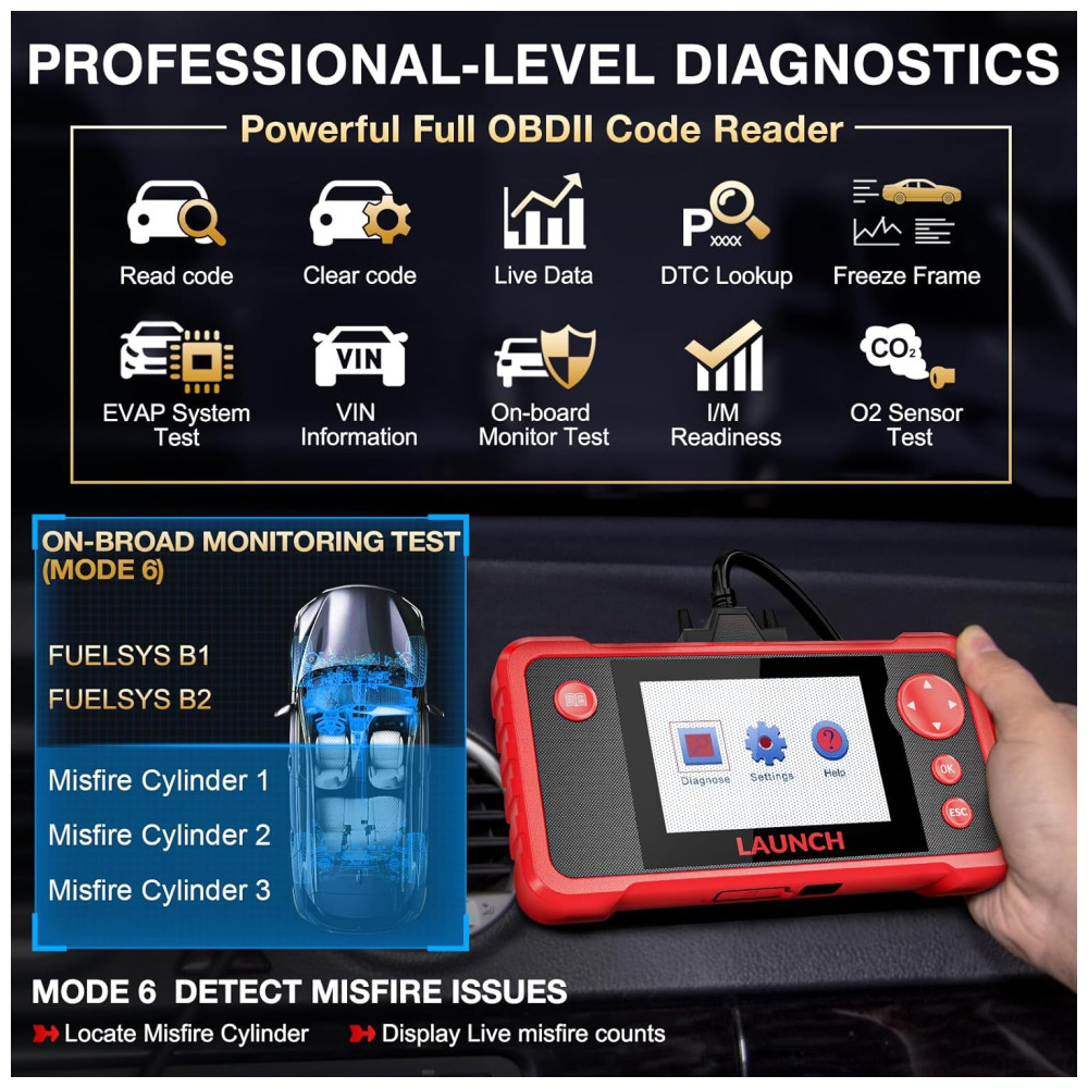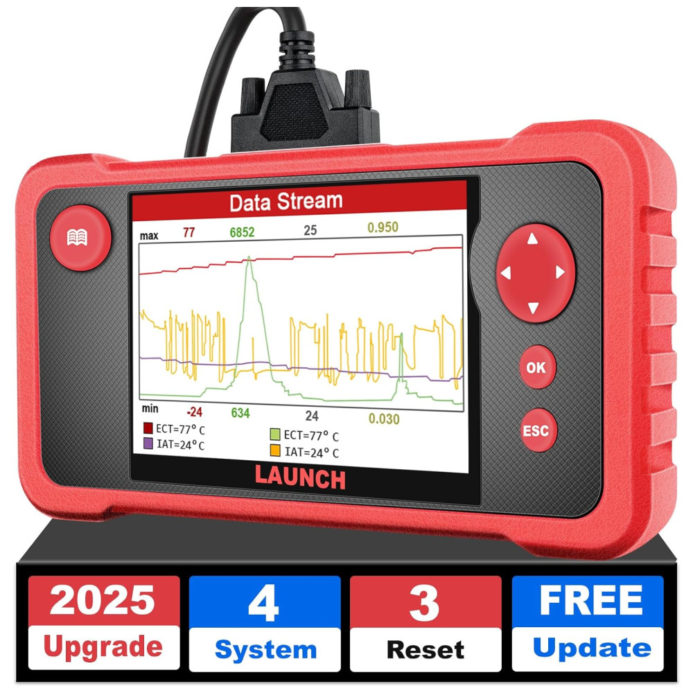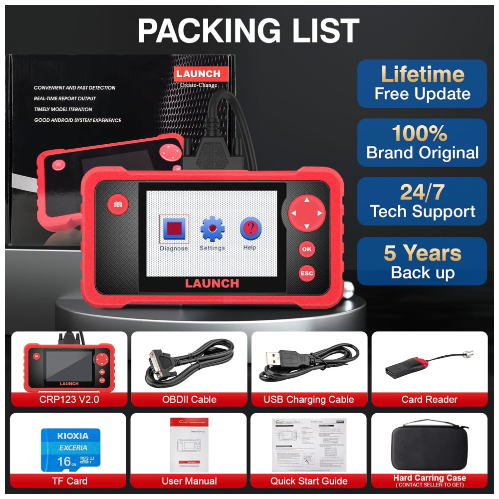 Scanner Automotivo CRP123 Atualização USB e Vitalícia ENG TCM ABS SRS Display Colorido LAUNCH 8542036902 Vermelho
