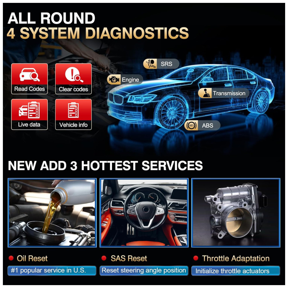 Modos de teste OBDII completos Suporta modos de teste OBDII completos com modo avançado 4 Fluxo de dados PCM ao vivo em formatos gráficos, capacidade de ler , limpar DTCs e fazer testes de fumaça, incluindo prontidão I , M e testes de sensor de O2, dados de quadro de congelamento, O teste do sistema EVAP, recupera informações do veículo e muito mais ajuda a obter um aviso antecipado. Esta é a melhor escolha para usuários de família, faça você mesmo e veículos s