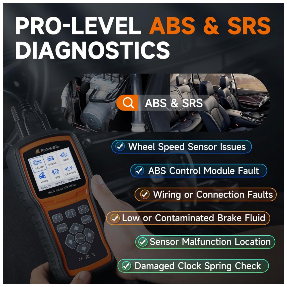 Scanner FOXWELL NT630 Elite ABS Airbag OBD2 não apenas fornece um diagnóstico preciso e profissional das falhas do ABS , SRS , SAS, mas também remove o ar das câmaras de fluido de freio internas após a manutenção dos freios. Sempre que o sistema de freio é aberto para substituir componentes como pinças, cilindros de roda, cilindro mestre ou linhas de freio ou mangueiras, o ar entra. O ar deve ser removido sangrando os freios, se você quiser um pedal de freio firme. Você pode usar este scanner de diagnóstico para ajudar a sangrar o freio, dando um ciclo na bomba e nas válvulas durante o processo de sangramento. A ferramenta de verificação OBD permite temporariamente que você ative ou controle o sistema e o componente ABS , Airbag, incluindo interruptores, sensores, relés e atuadores. Economizando tempo e custos de mão de obra. COM COMPATIBILIDADE PERFEITA. O scanner de diagnóstico para automóveis é compatível com quase todos os carros OBDII, SUVs, minivans, caminhões leves vendidos em todo o mundo, o que o torna adequado tanto para mecânicos quanto para Diyers. Cobertura ABS e SRS para mais de 60 marcas de veículos. A calibração do SAS está em mais de 30 marcas selecionadas. ATUALIZAÇÃO gratuita vitalícia permite que você obtenha o mais software desta ferramenta de diagnóstico automotivo da Fox, obtendo mais modelos e idioma de veículos disponíveis na base