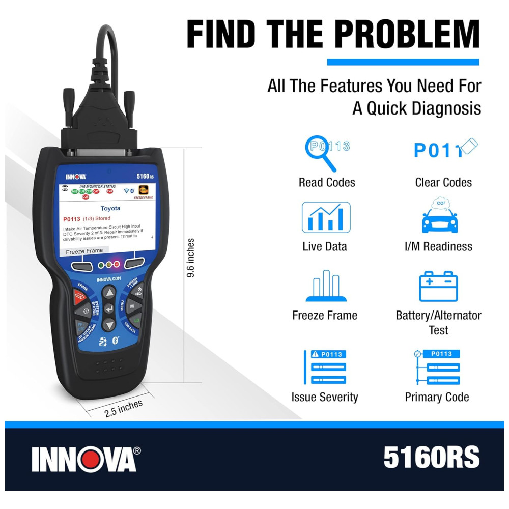 Scanner Automotivo Pro OBD2 com Diagnóstico e Bateria Recarregável 12V INNOVA 5160RS Azul