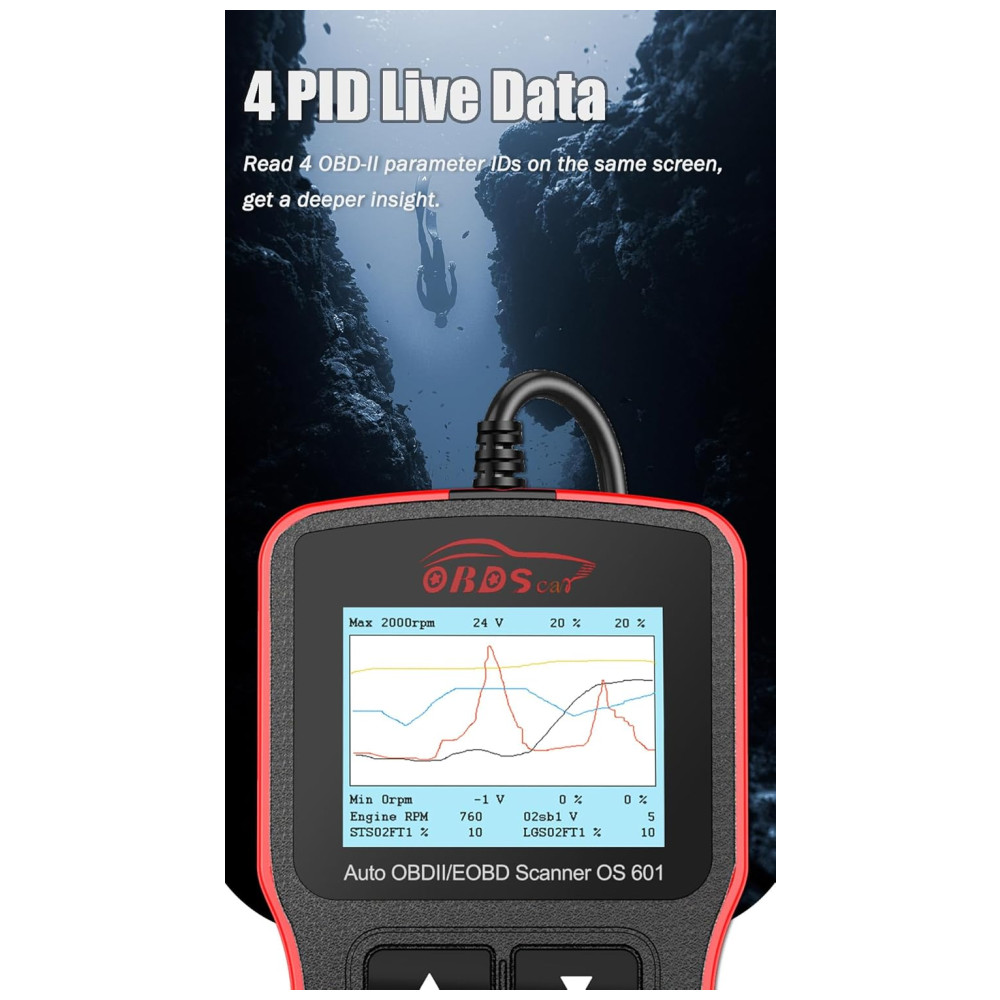 Scanner Automotivo Profissional com Diagnóstico OBD2 EOBD 12V OBDSCAR OS601 Vermelho