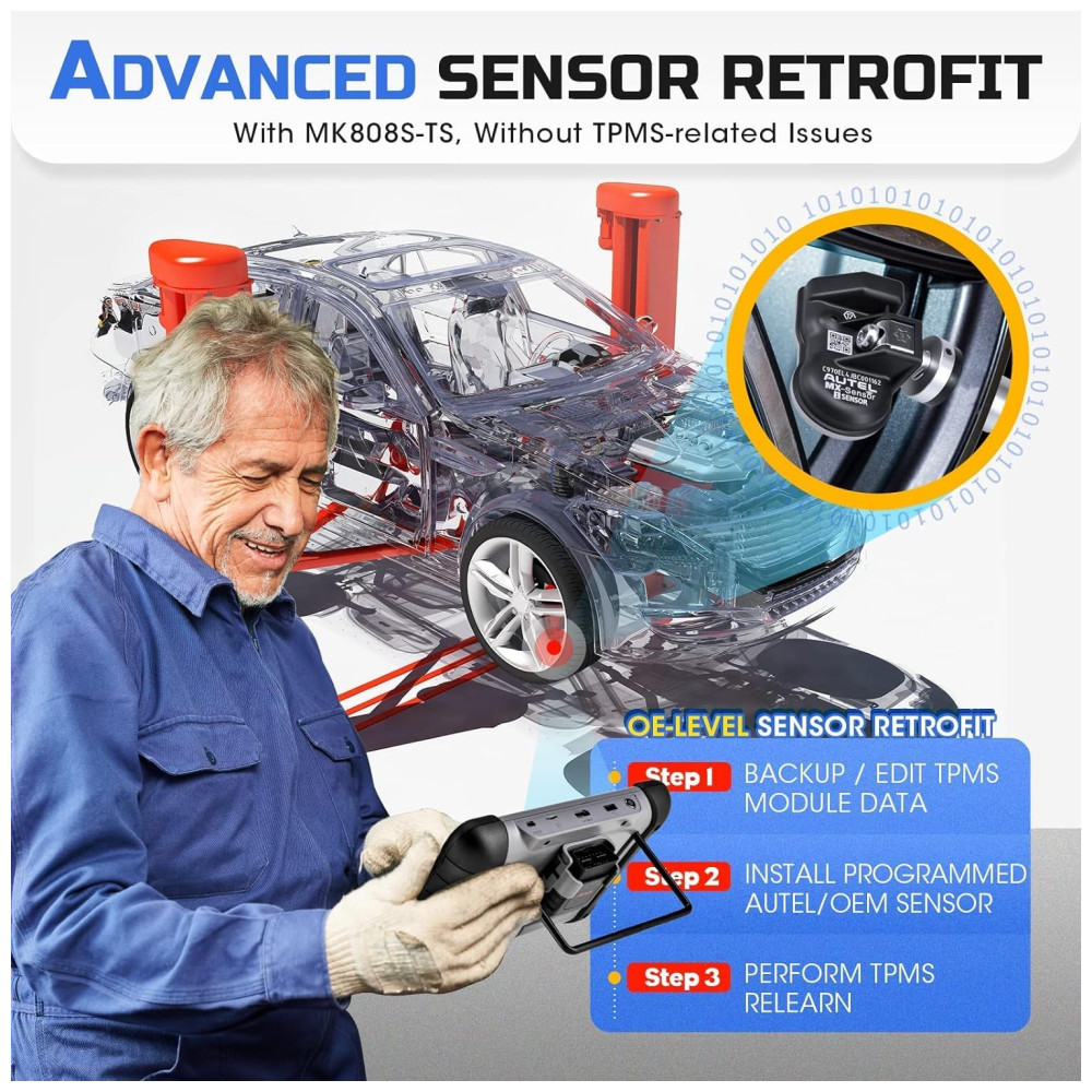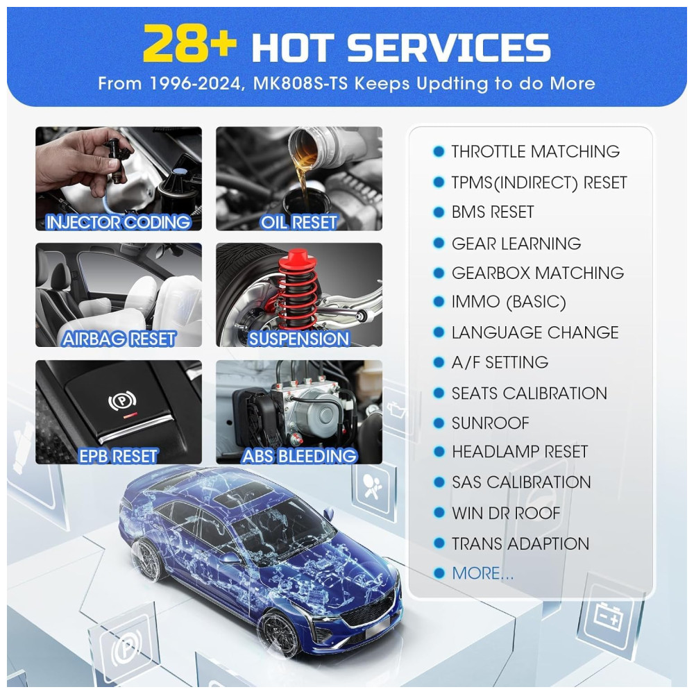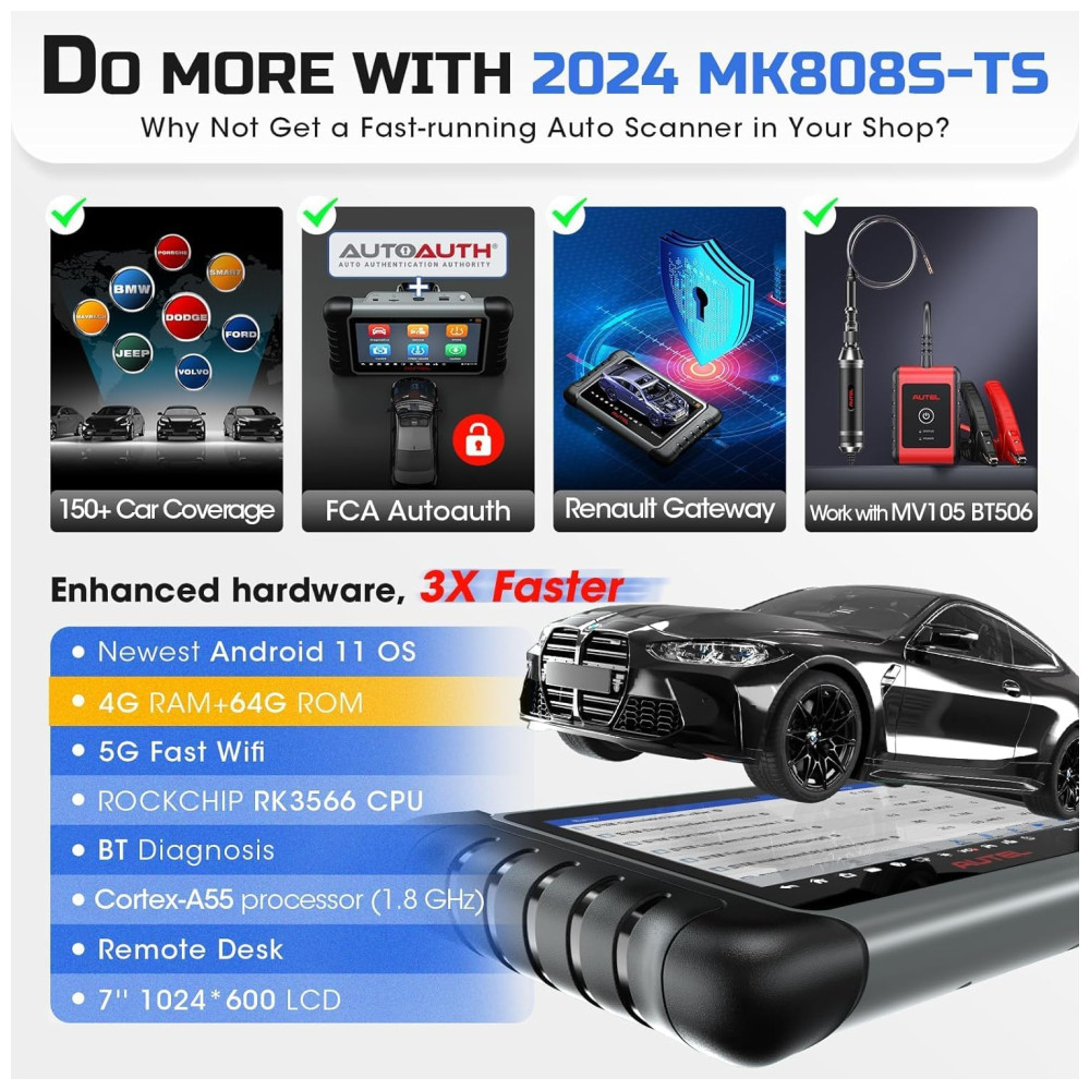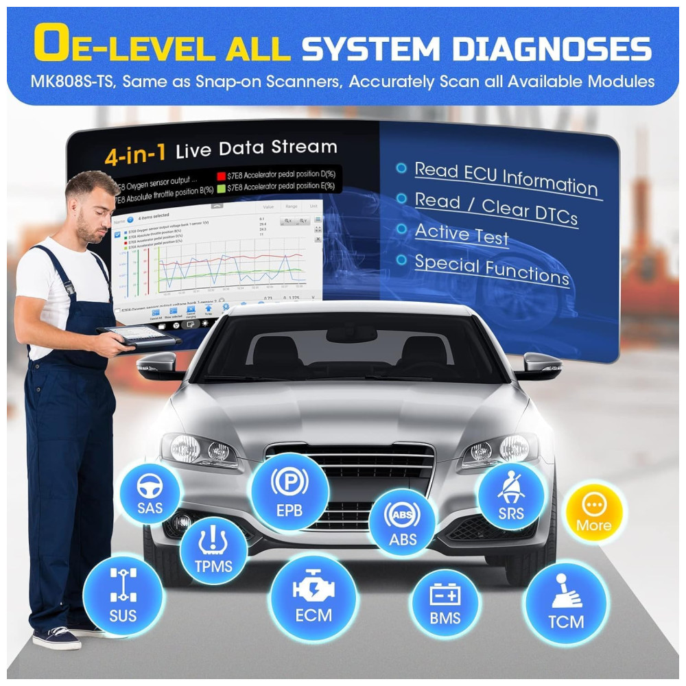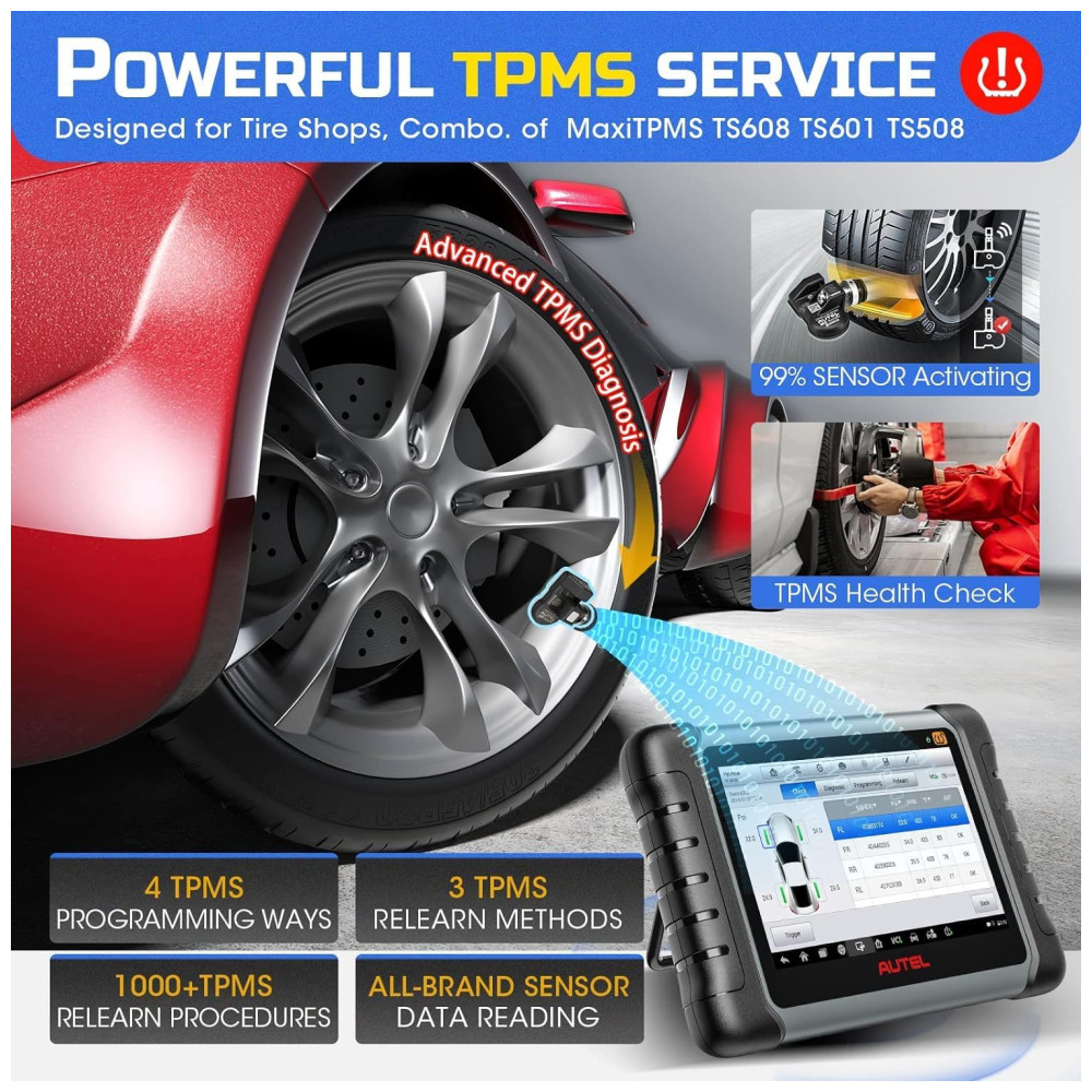 SERVIÇO TPMS COMPLETO O scanner Autel MK808TS não suporta apenas os serviços TPMS completos como TS601 e TS508, incluindo ativação e programação de sensores etc. Esta ferramenta TPMS também permite visualizar intuitivamente as informações de diagnóstico em uma tela super sensível ao toque. SOFTWARE RICO EM RECURSOS Comparado com o Autel MX808 e MK808BT, este scanner de diagnóstico está equipado com funções de diagnóstico mais abrangentes e superiores, incluindo diagnósticos completos do sistema e redefinição de óleo , EPB , BMS , SAS , DPF, serviço IMMO etc. HARDWARE AVANÇADO Este scanner Autel oferece caixa VCI para conexão Bluetooth sem o incômodo de limitação de comprimento no cabo obd2, e ainda é construído com o processador Cortex A9 de ponta, sistema operacional Android e memórias de 32 GB para melhorar a eficiência do diagnóstico. COBERTURA EXTENSIVA DE CARRO Mais de 80 dos carros podem ser facilmente diagnosticados com esta ferramenta TPMS. É um dispositivo ideal que ajuda a encontrar soluções disponíveis para resolver com precisão e rapidez os problemas do carro, seja para proprietários de automóveis ou mecânicos profissionais. MELHOR EXPERIÊNCIA DO USUÁRIO Além de vários idiomas