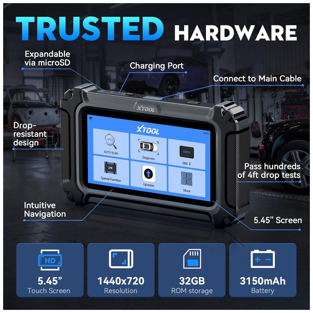 O XTOOL D6S é um escâner OBD2 acessível que oferece diagnósticos de nível de concessionária, sendo uma atualização do XTOOL D6. Com varredura de sistemas completos originais e 30 funções de manutenção essenciais, atende a 99% das necessidades diárias de reparo para famílias, mecânicos, entusiastas de carros e hobistas. Realiza verificações detalhadas de sistemas como HVAC, realiza reconfiguração de AC e soluciona problemas que scanners de código mais baratos não conseguem. Compatível com protocolo CAN FD e FCA AutoAuth para veículos modernos, tornando-se uma ferramenta indispensável tanto para profissionais quanto para iniciantes. Ideal para presentear seu pai. Economize em Serviços de Manutenção: o XTOOL D6S oferece 30 funções populares que ajudam a reparar seu carro e economizar em revisões, evitando visitas caras à concessionária. Além disso, permite realizar adaptação de transmissão, evitando gastos de até 200 em oficinas. Realize sangrias de freio, rotações de pneus, reconfiguração de BMS, SAS, TPMS, entre outros. Diagnóstico Completo de Nível Original: resolva problemas como falhas intermitentes em veículos como Ford F150 com o XTOOL D6S. Este escâner permite verificar de forma abrangente todos os módulos disponíveis, como motor, ABS, SRS, transmissão, EPB, airbag, entre outros. Fornece leituras de códigos de diagnóstico, dados em tempo real, gráficos de dados e análises detalhadas para uma reparação precisa. Funcionalidades Amigáveis ao Usuário: com identificação automática do VIN, gráficos em tempo real, informações detalhadas de DTC e relatórios de diagnóstico, o XTOOL D6S torna a análise de problemas automotivos mais simples e eficaz. Atualizações gratuitas, ampla cobertura de marcas e design resistente a quedas garantem uma ferramenta confiável para diagnósticos automotivos.