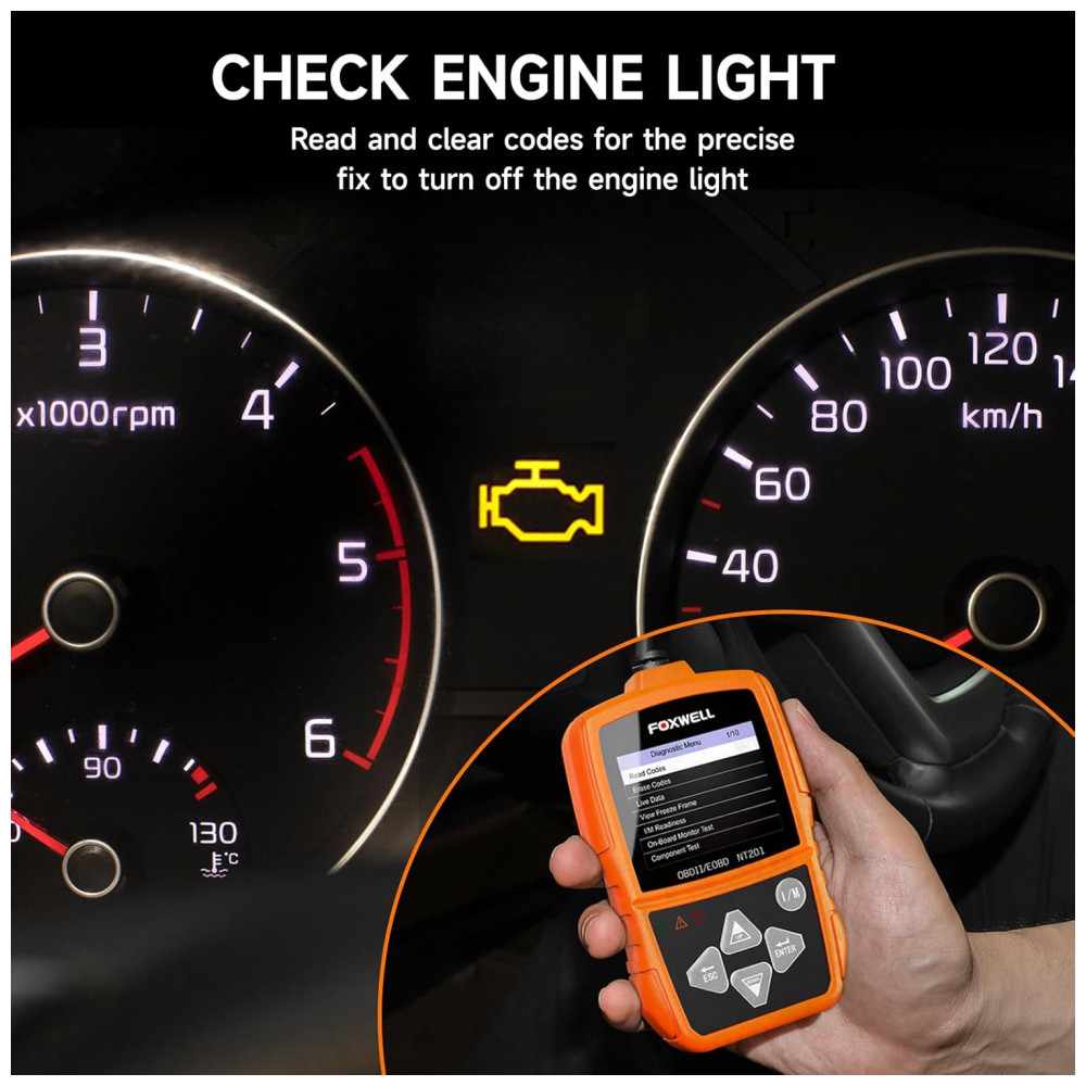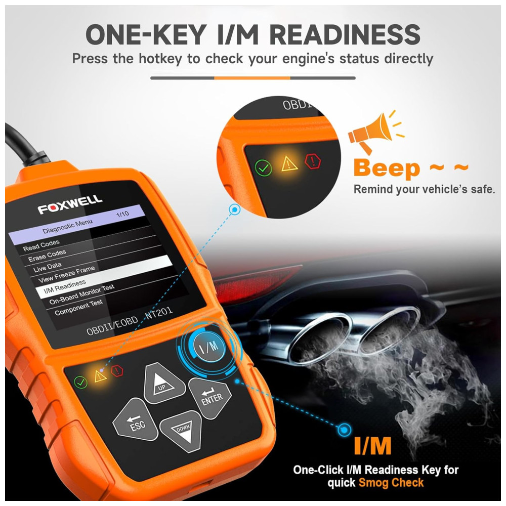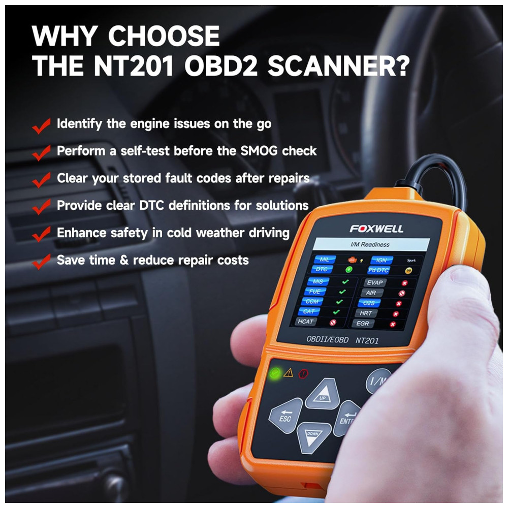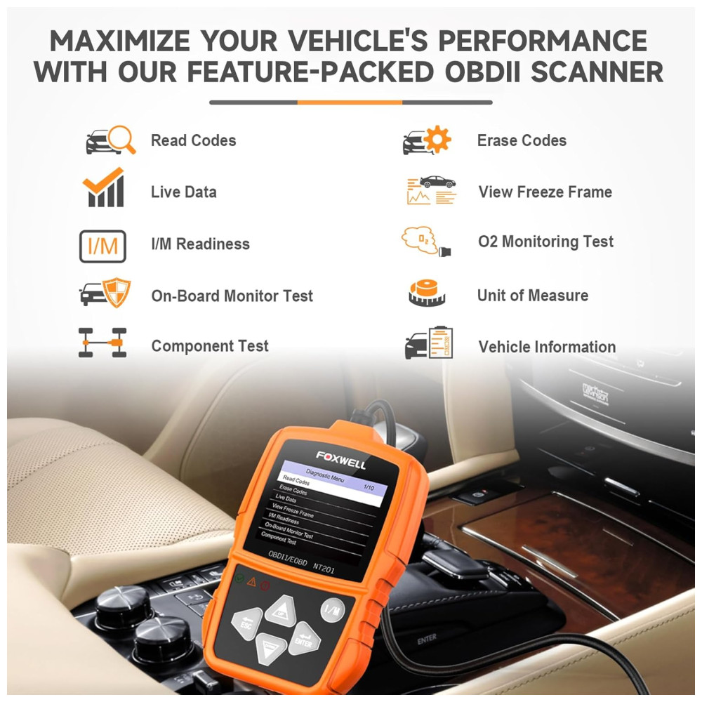 Scanner de Motor Automotivo Diagnóstico OBD2 com 10 Modos FOXWELL NT201 Laranja